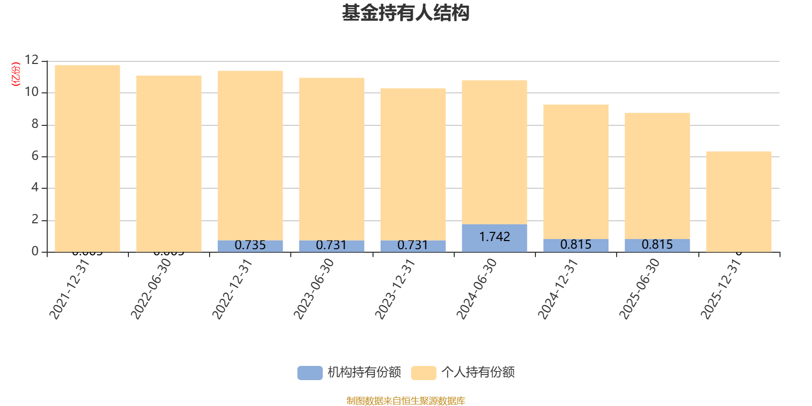 截至2025年12月31日,基金持有人共计7874户,合计持有6.31亿份。其中管理人员工持有2411.45份,机构持有份额占比0.00%,个人投资者占比100.00%。