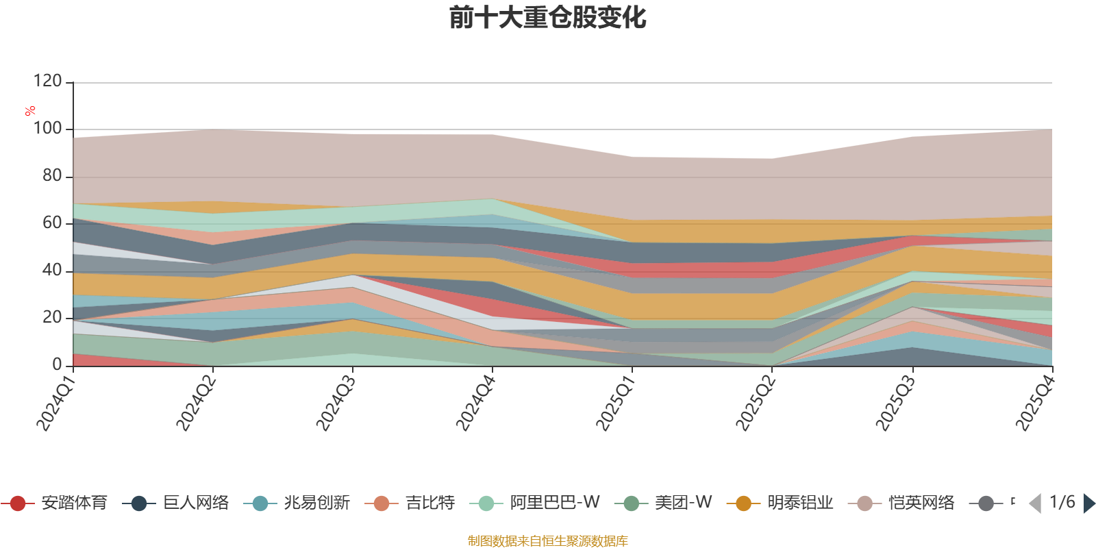 该基金持股集中度较高,近2年前十大重仓股集中度长期超过60%。截至2025年末,基金十大重仓股分别是腾讯控股、兆易创新、迈为股份、寒武纪、TCL电子、宁德时代、中微公司、长川科技、中芯国际、上海复旦、复旦微电。