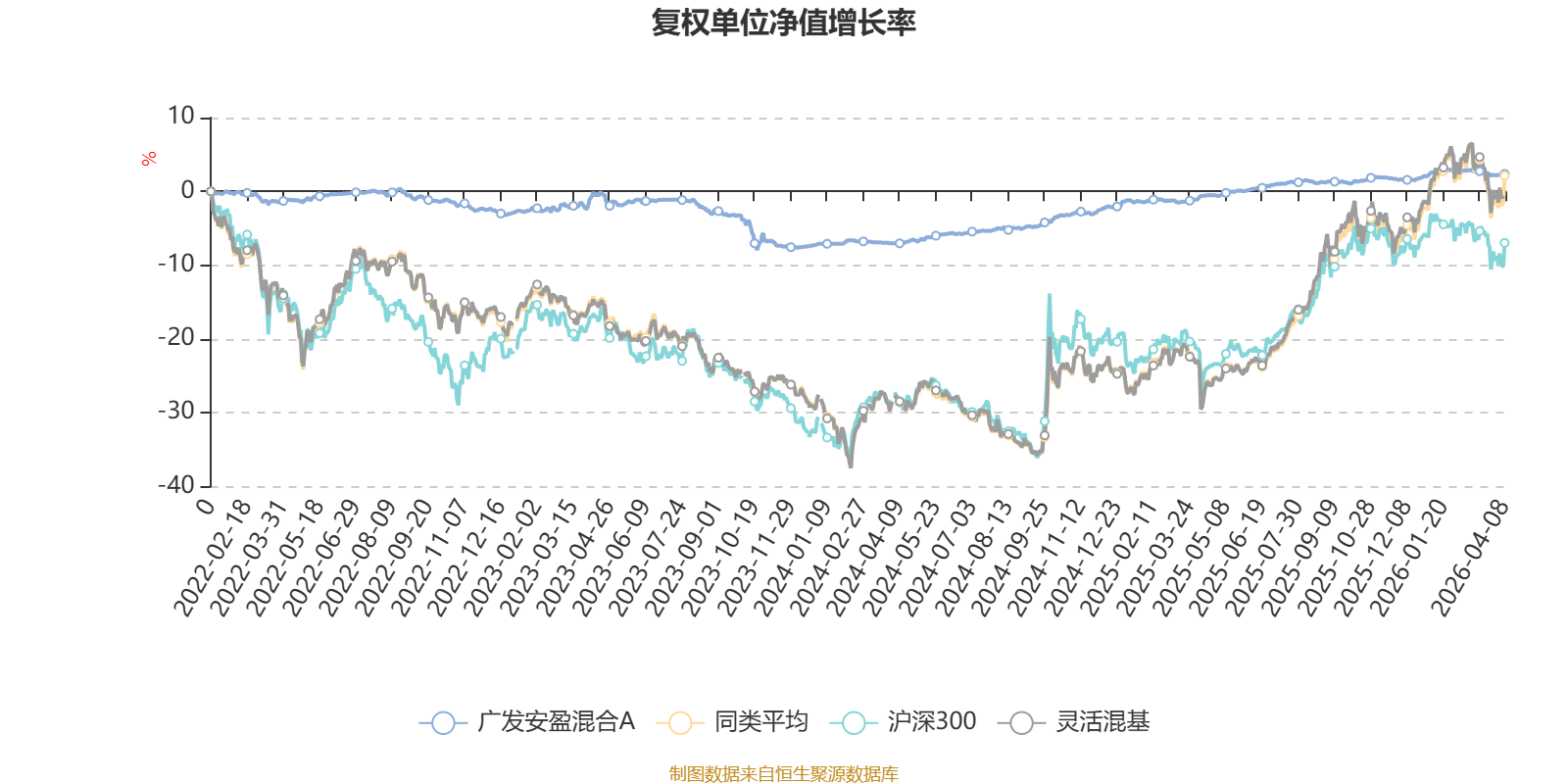 截至4月8日,广发安盈混合A近三个月复权单位净值增长率为-0.20%,位于同类可比基金693/1287;近半年复权单位净值增长率为1.09%,位于同类可比基金774/1286;近一年复权单位净值增长率为3.02%,位于同类可比基金1227/1286;近三年复权单位净值增长率为2.44%,位于同类可比基金931/1286。