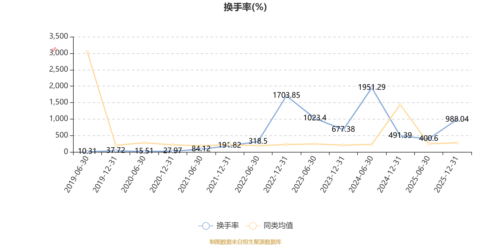 截至2025年12月31日,基金最近一年换手率约1744.51%,持续1年高于同类均值。