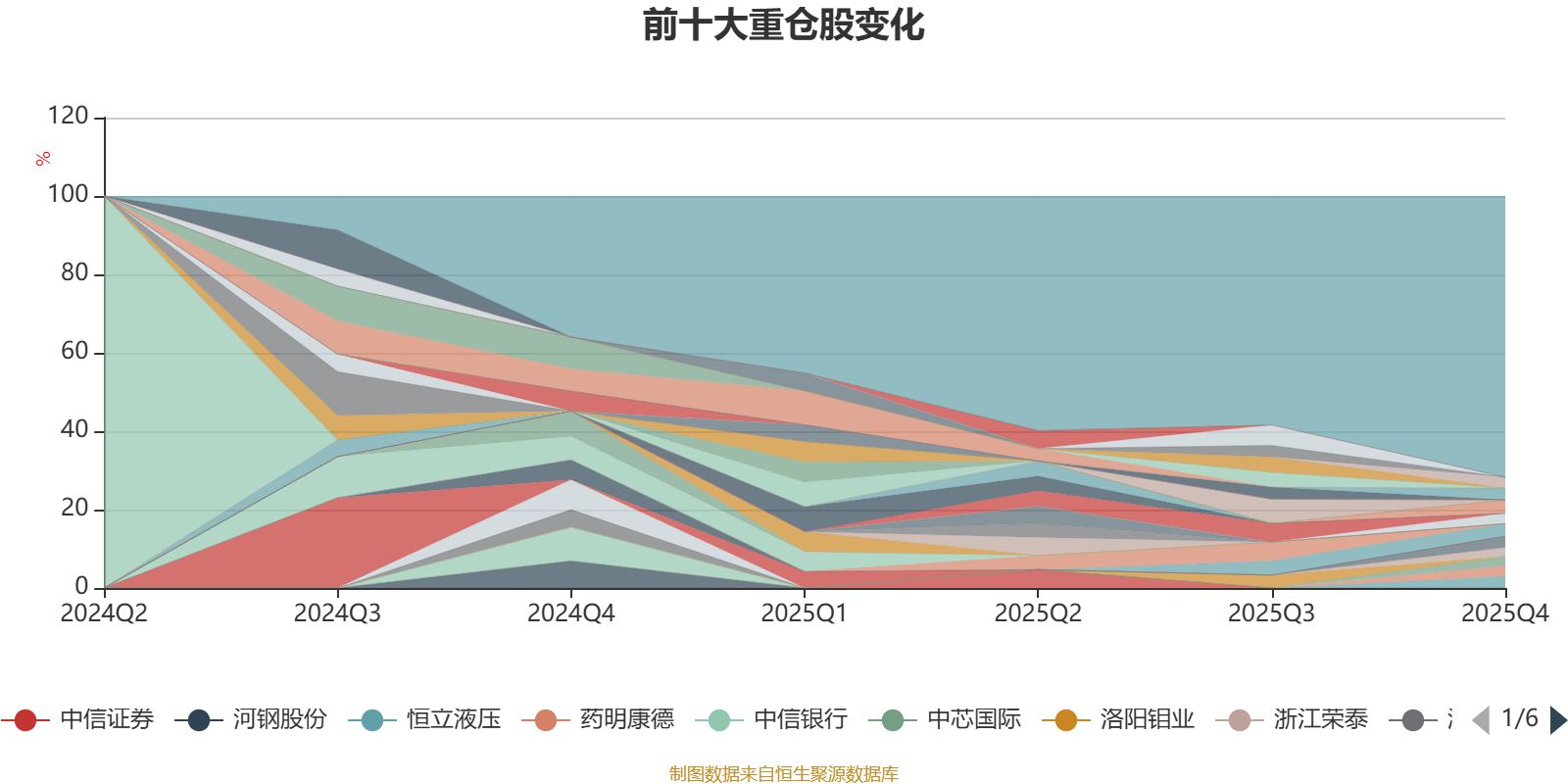截至2025年末,基金十大重仓股分别是三花智控、宁德时代、恒立液压、长盈精密、中国太保、拓普集团、药明康德、双环传动、中芯国际、浙江荣泰。