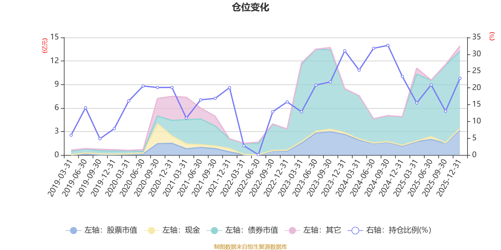 据定期报告数据统计,近三年平均股票仓位为22.68%,同类平均为19.2%。2024年三季度末基金达到32.65%的最高仓位,2022年上半年末最低,为0.15%。