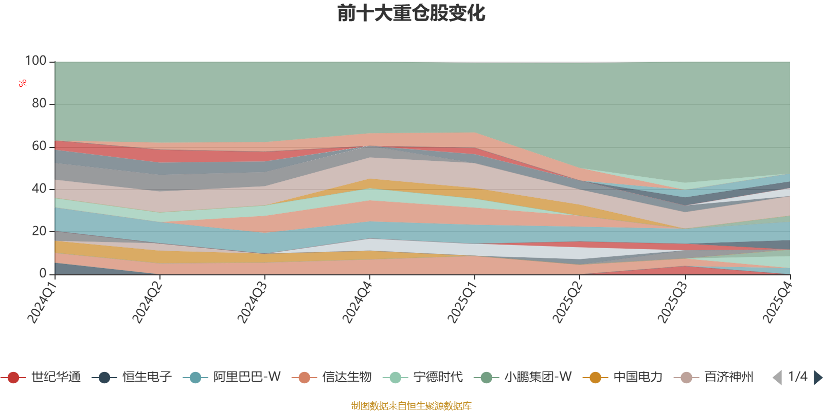 截至2025年末,基金十大重仓股分别是腾讯控股、汇川技术、宁德时代、中国平安、立讯精密、紫金矿业、小鹏集团-W、恒瑞医药、阿里巴巴-W、国泰海通。