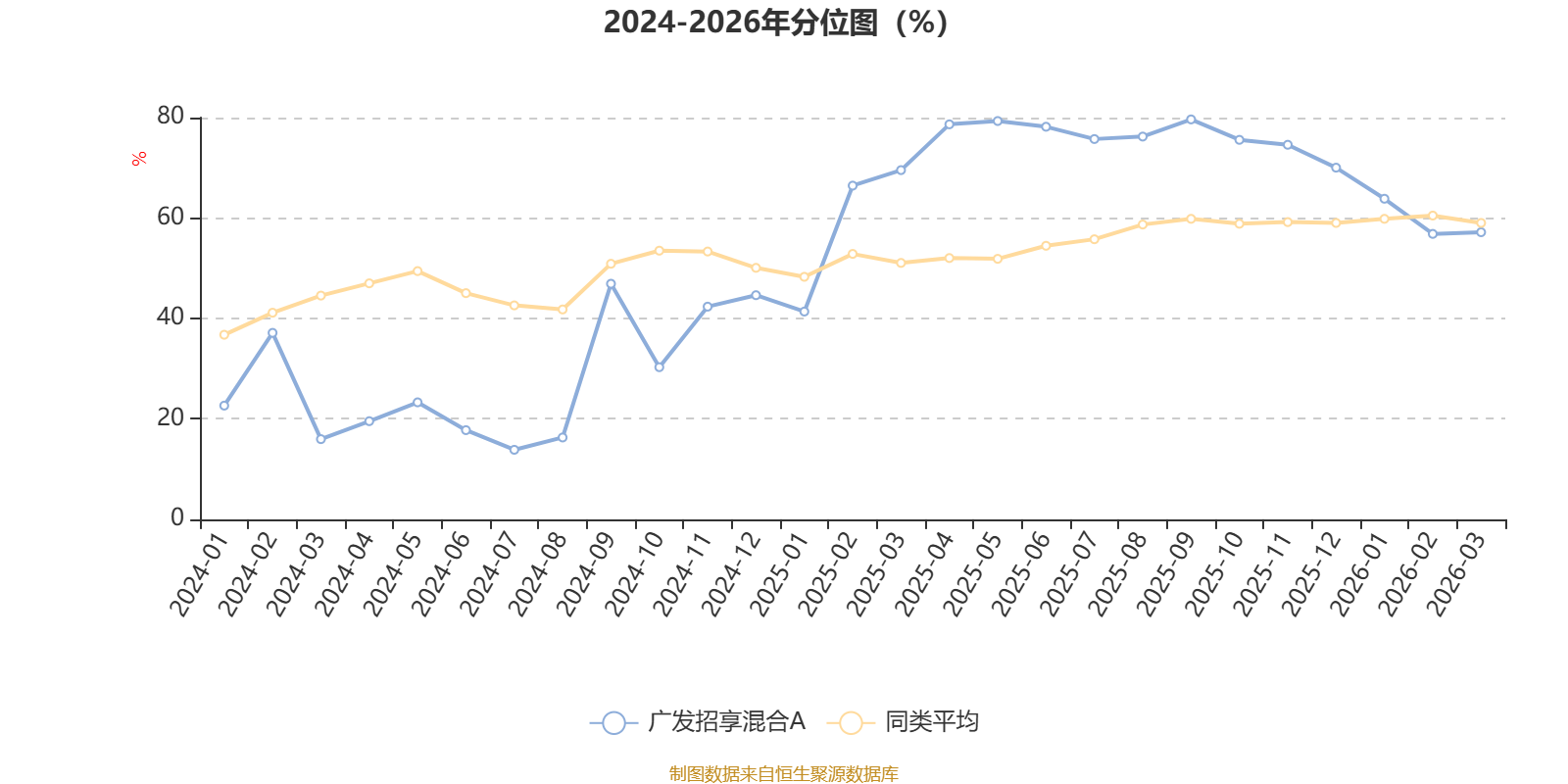 通过所选区间该基金净值增长率分位图,可以观察该基金与同类基金业绩比较情况。图为坐标原点到区间内某时点的净值增长率在同类基金中的分位数。