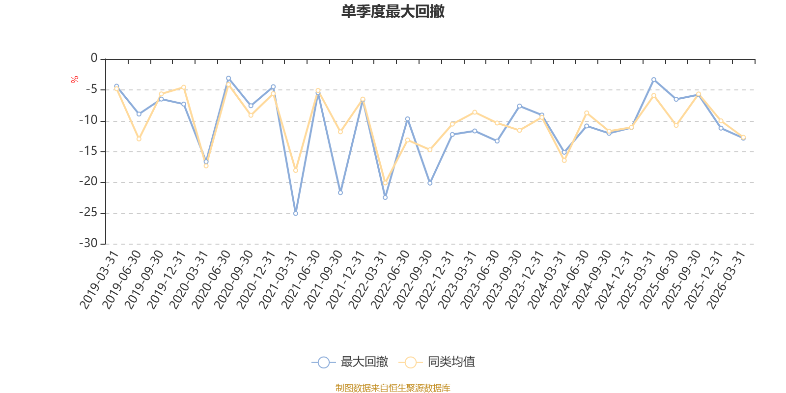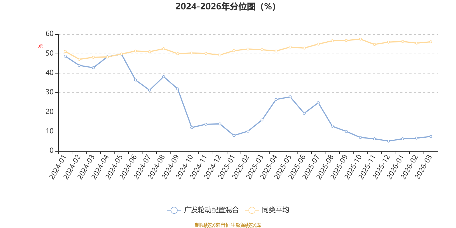 通过所选区间该基金净值增长率分位图,可以观察该基金与同类基金业绩比较情况。图为坐标原点到区间内某时点的净值增长率在同类基金中的分位数。