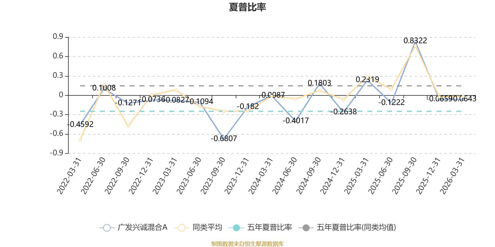 截至3月31日,基金近三年夏普比率为-0.1006,位于同类可比基金175/178。