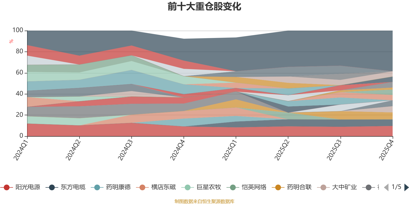 该基金持股集中度较高,近2年前十大重仓股集中度长期超过60%。截至2025年末,基金十大重仓股分别是阳光电源、药明合联、东方电缆、大中矿业、国城矿业、鹏辉能源、中矿资源、方大特钢、燕京啤酒、福莱特、福莱特玻璃。