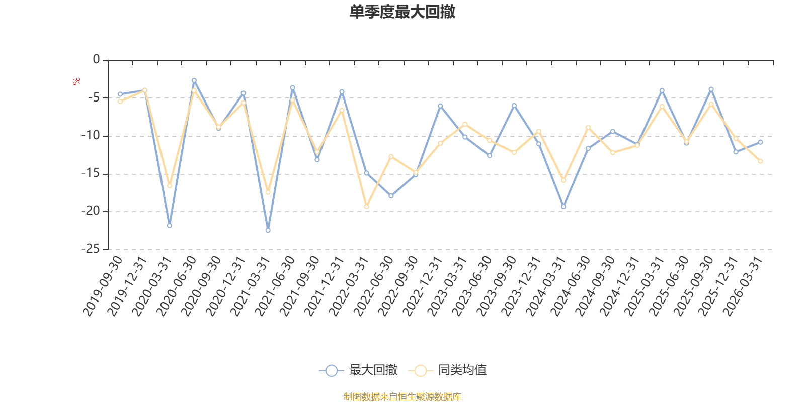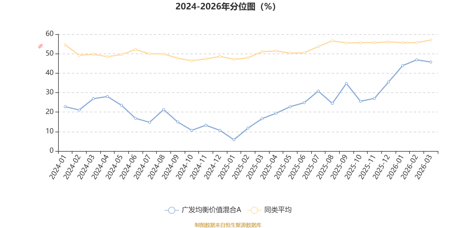 通过所选区间该基金净值增长率分位图,可以观察该基金与同类基金业绩比较情况。图为坐标原点到区间内某时点的净值增长率在同类基金中的分位数。