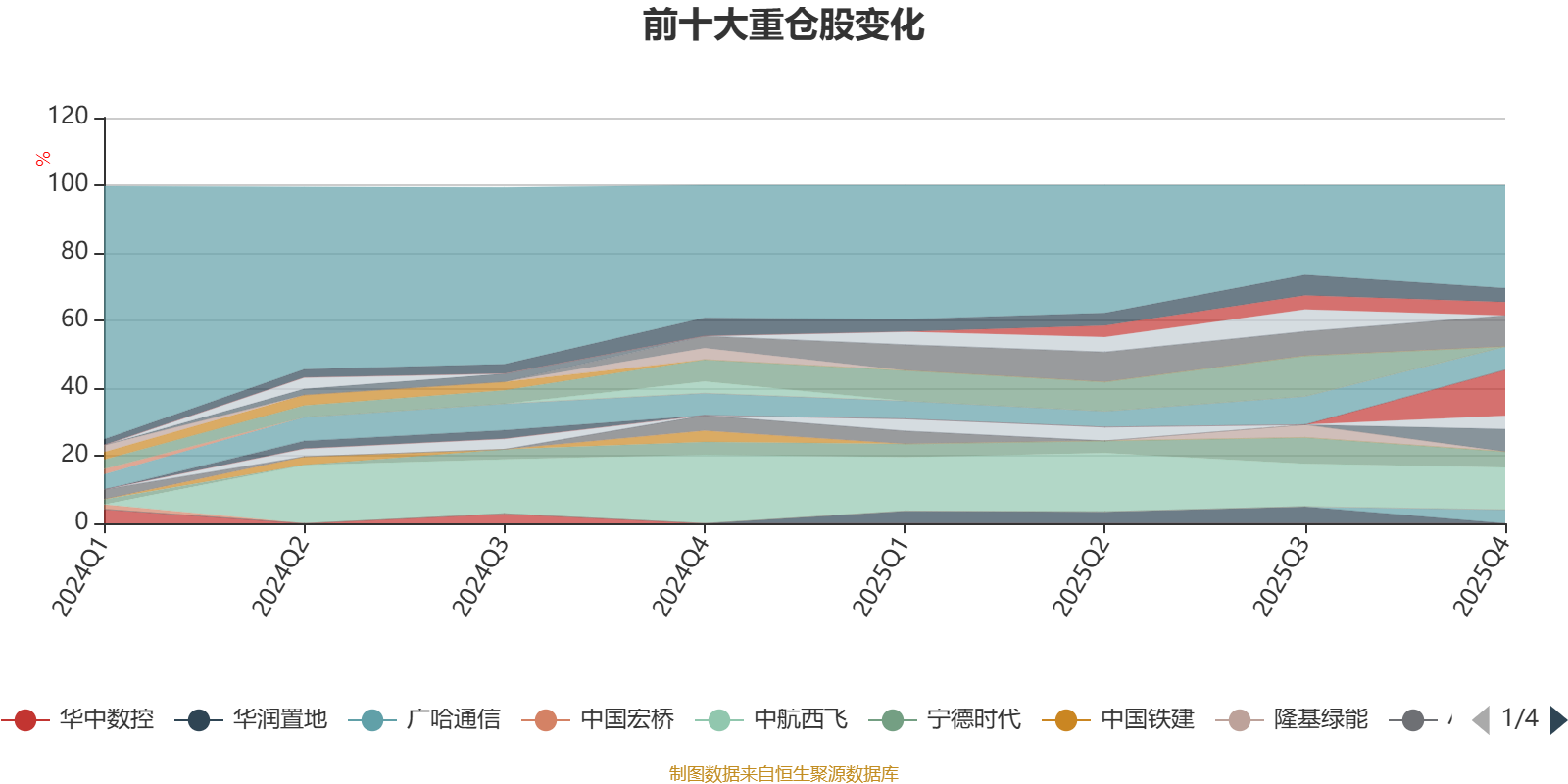 截至2025年末,基金十大重仓股分别是七一二、中航西飞、中航高科、腾讯控股、佳讯飞鸿、宁德时代、中芯国际、广哈通信、恒瑞医药、中国平安。