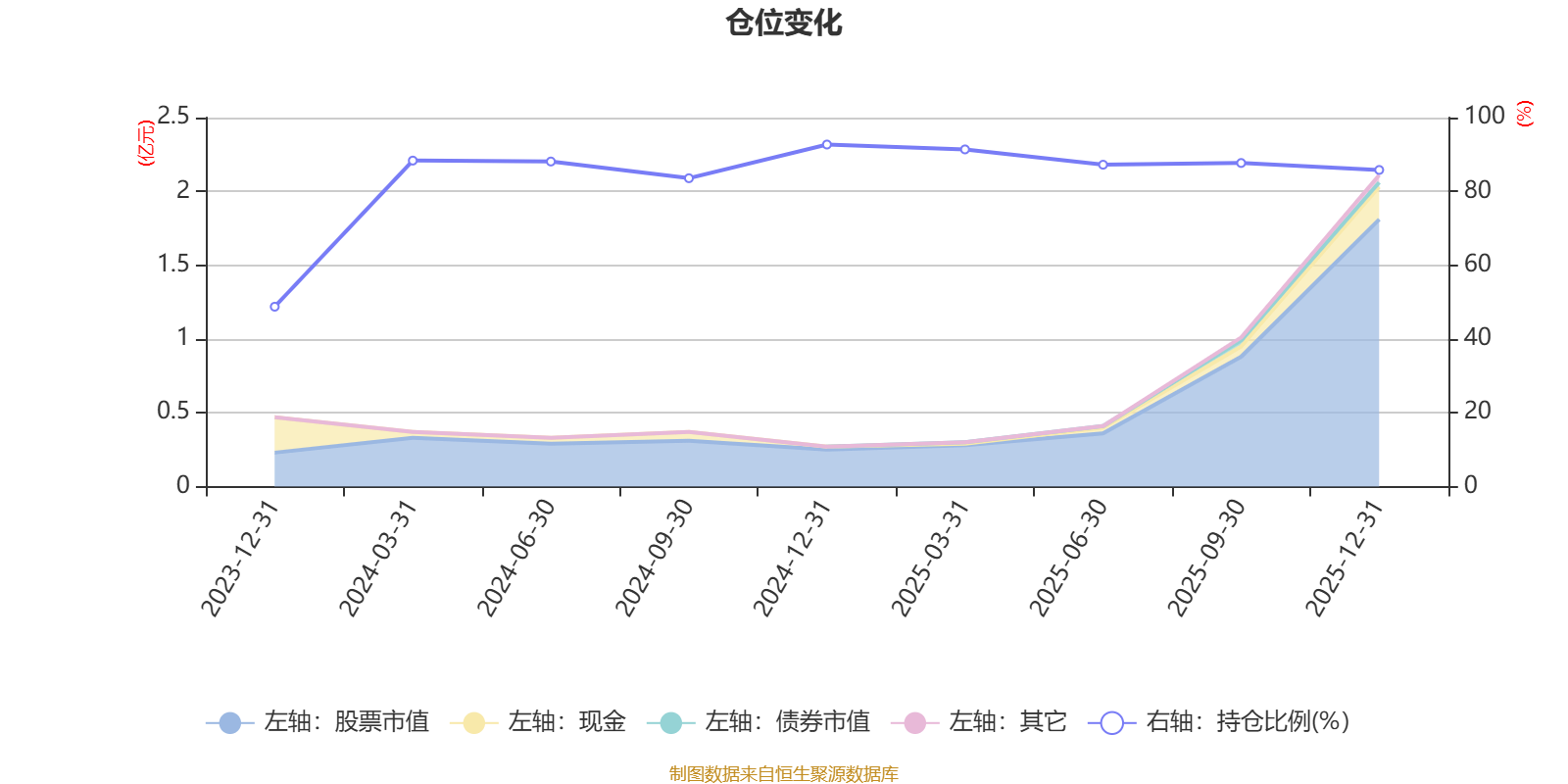 据定期报告数据统计,成立以来平均股票仓位为83.73%,同类平均为86.7%。2024年末基金达到92.7%的最高仓位,2023年末最低,为48.75%。