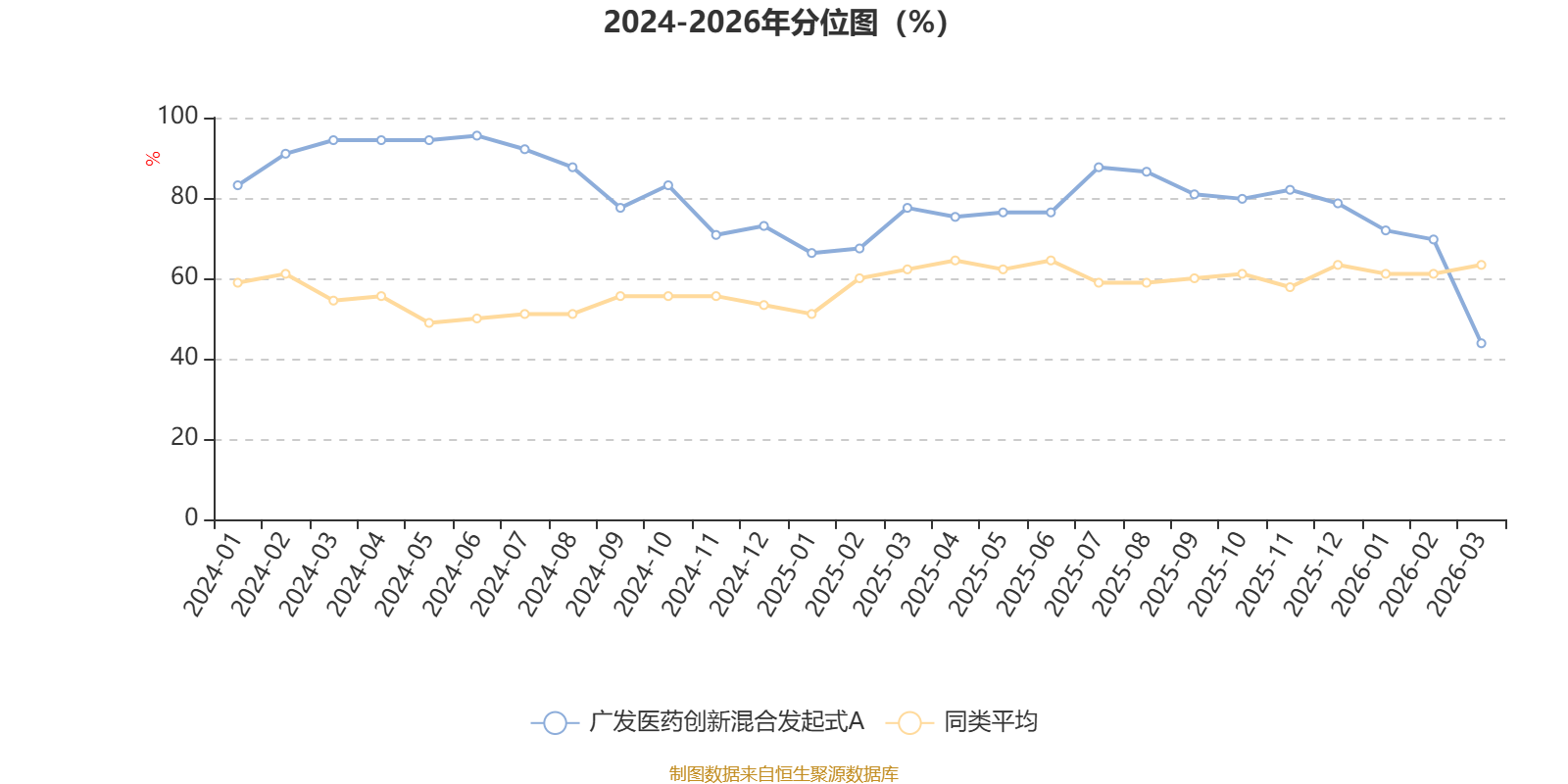 通过所选区间该基金净值增长率分位图,可以观察该基金与同类基金业绩比较情况。图为坐标原点到区间内某时点的净值增长率在同类基金中的分位数。