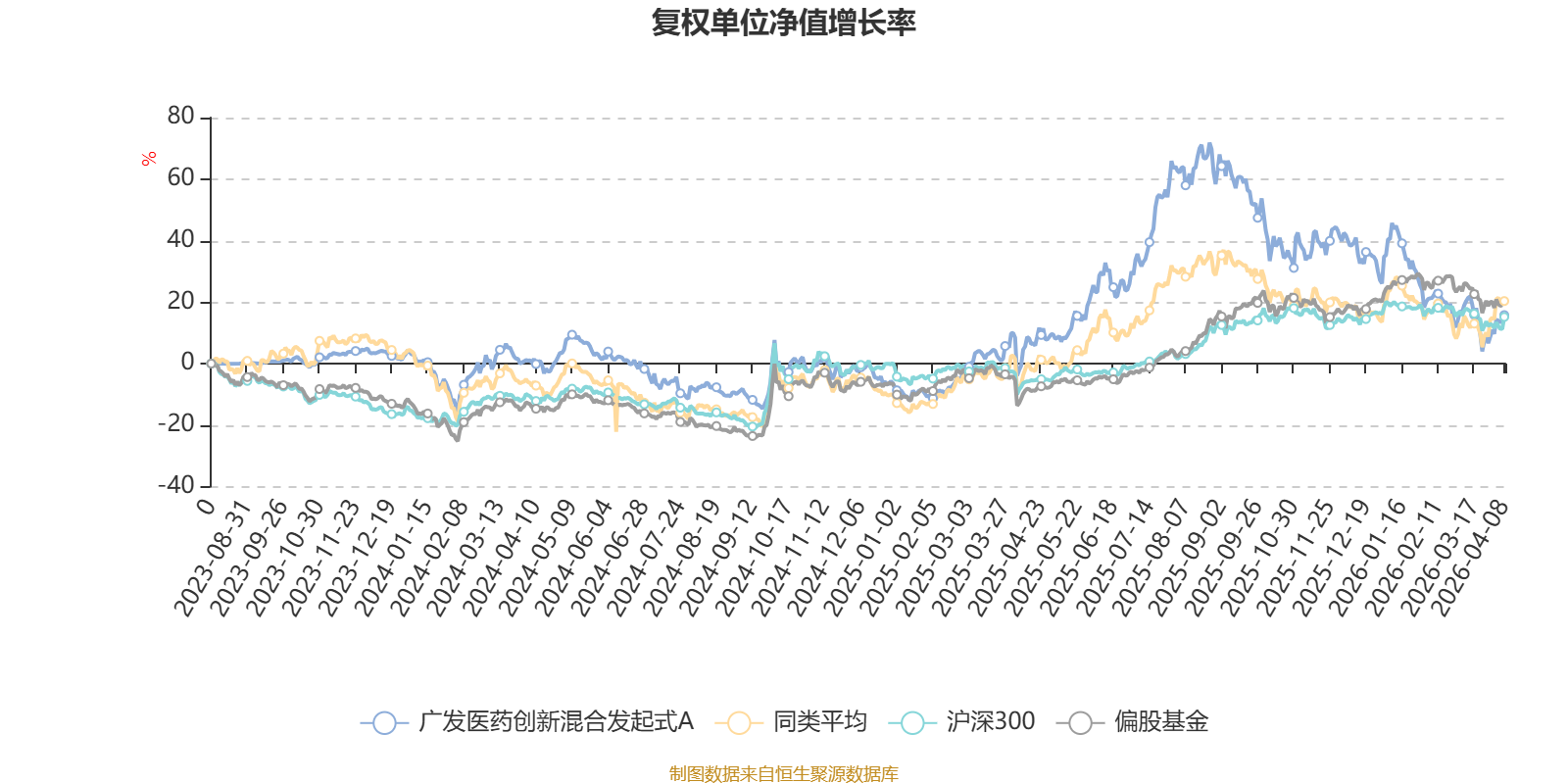 截至4月8日,广发医药创新混合发起式A近三个月复权单位净值增长率为-17.61%,位于同类可比基金105/106;近半年复权单位净值增长率为-24.70%,位于同类可比基金105/106;近一年复权单位净值增长率为18.28%,位于同类可比基金84/104。