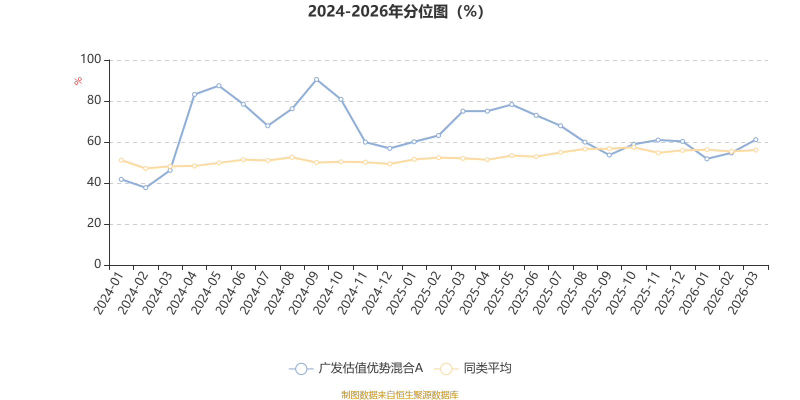 通过所选区间该基金净值增长率分位图,可以观察该基金与同类基金业绩比较情况。图为坐标原点到区间内某时点的净值增长率在同类基金中的分位数。
