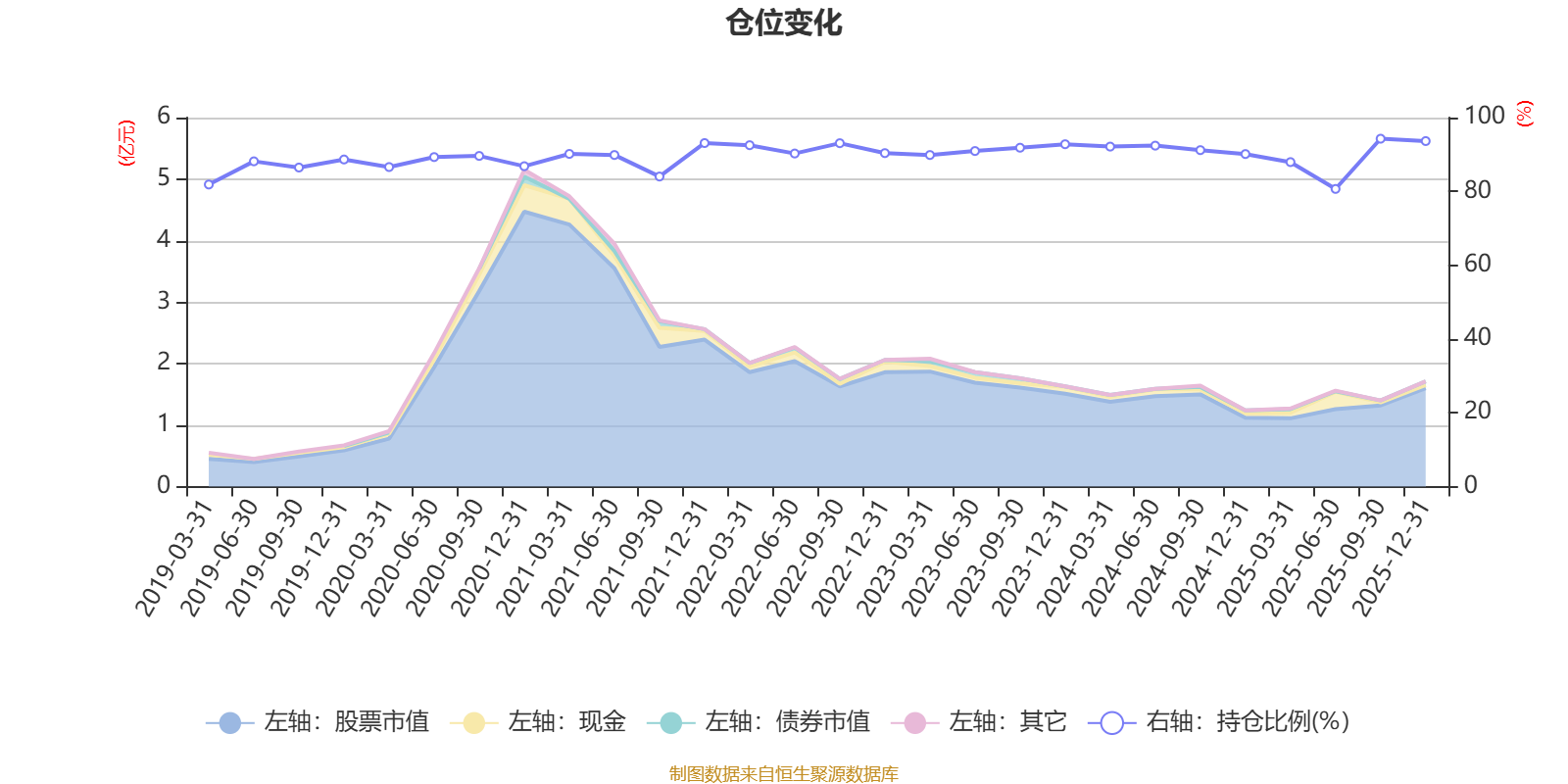 据定期报告数据统计,近三年平均股票仓位为90.65%,同类平均为85.83%。2025年三季度末基金达到94.28%的最高仓位,2025年上半年末最低,为80.67%。