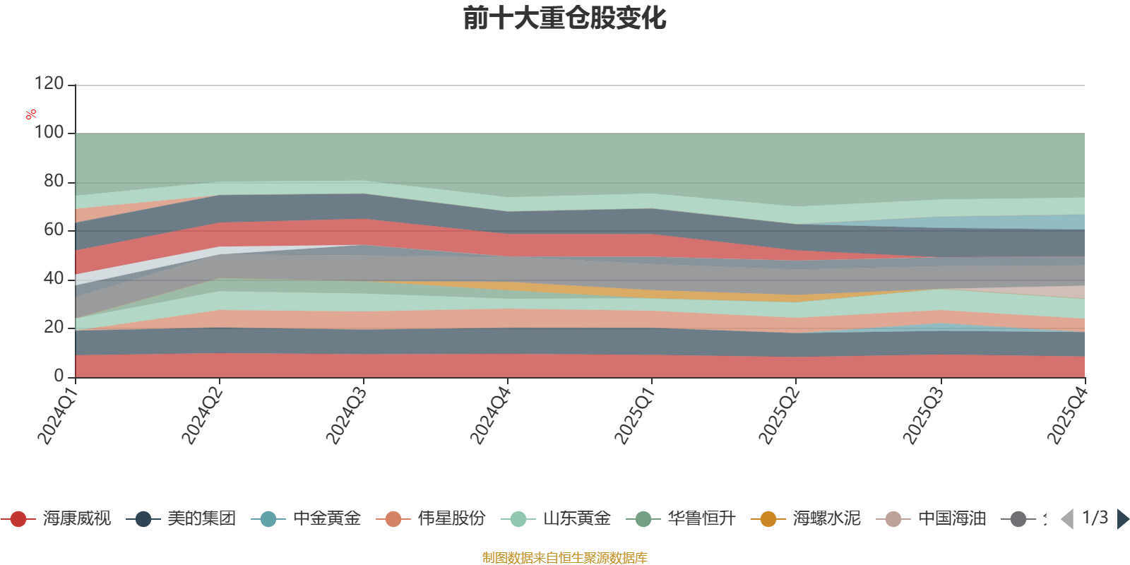 该基金持股集中度较高,且持股标的较为稳定,近2年前十大重仓股集中度长期超过60%。截至2025年末,基金十大重仓股分别是紫金矿业、美的集团、海康威视、分众传媒、山东黄金、杭州银行、思源电气、伟星股份、中国海油、继峰股份。