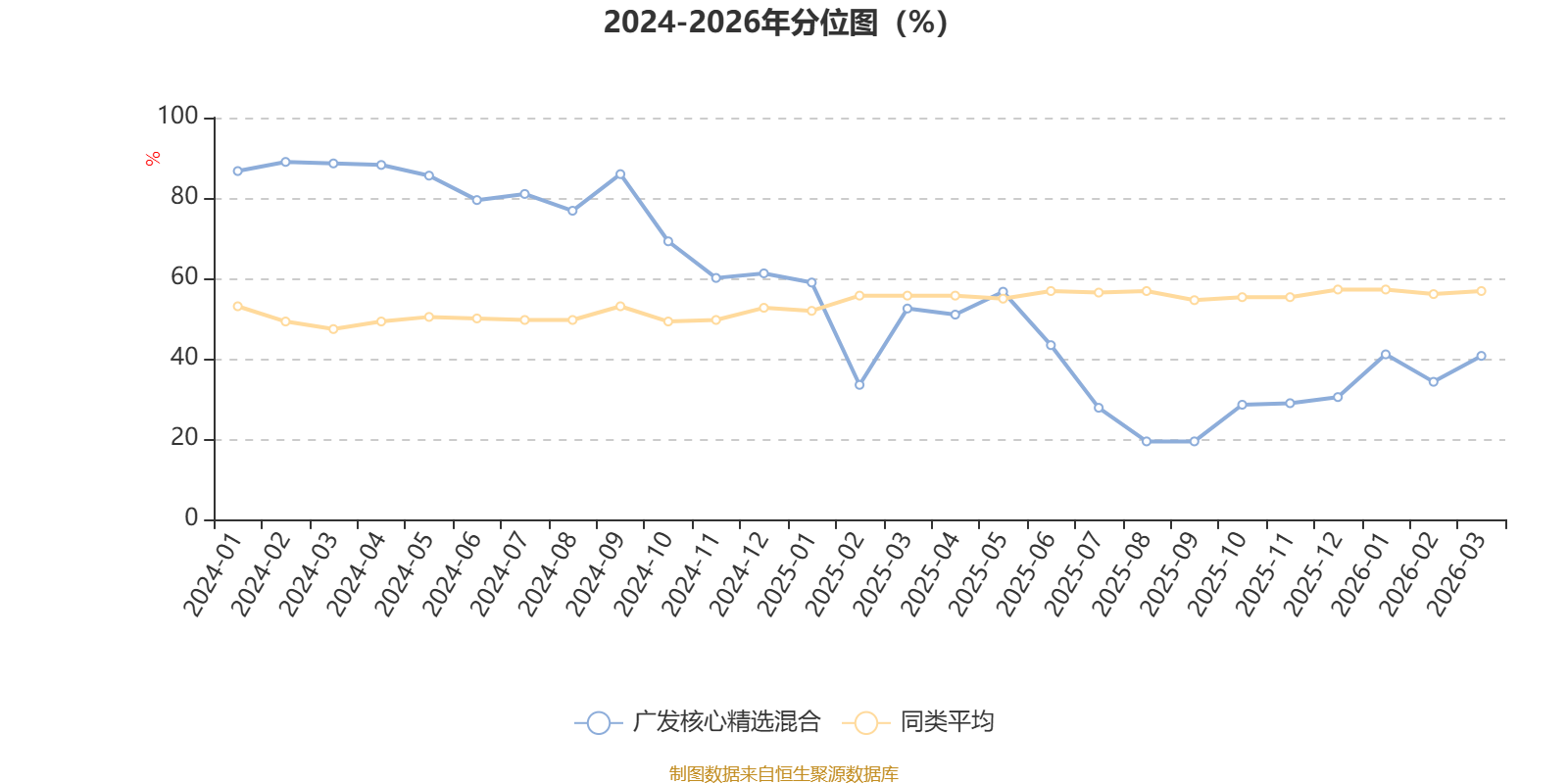 通过所选区间该基金净值增长率分位图,可以观察该基金与同类基金业绩比较情况。图为坐标原点到区间内某时点的净值增长率在同类基金中的分位数。