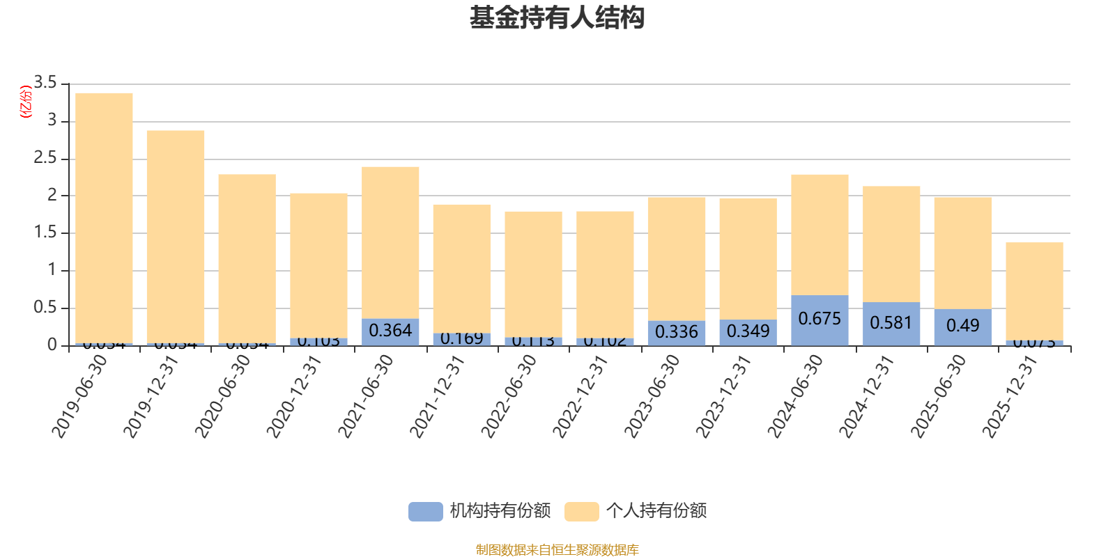 截至2025年12月31日,基金持有人共计2.98万户,合计持有1.38亿份。其中管理人员工持有89.68份,机构持有份额占比5.29%,个人投资者占比94.71%。