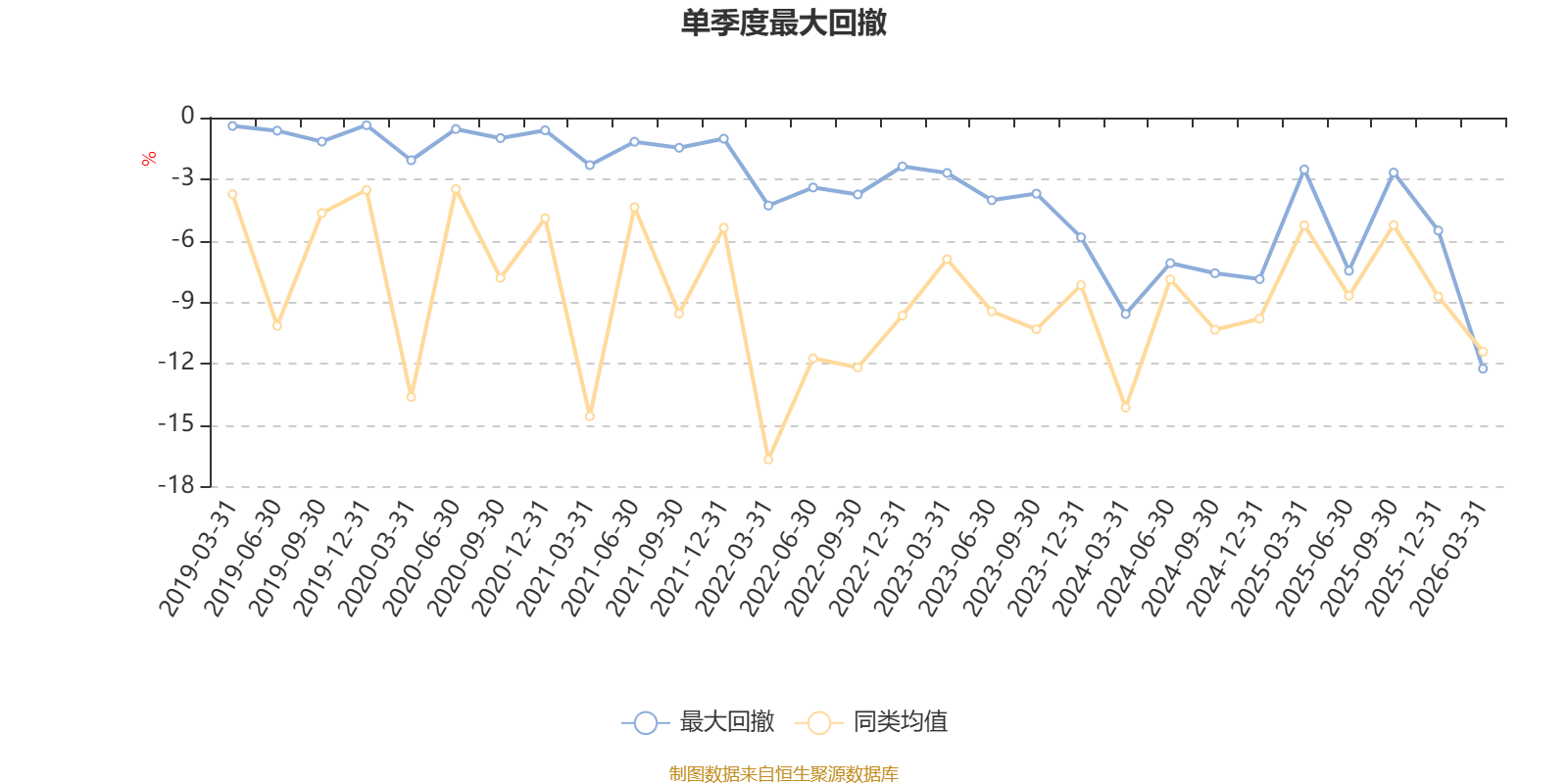 截至4月8日,基金近三年最大回撤为16.46%,同类可比基金排名219/1264。单季度最大回撤出现在2026年一季度,为12.25%。