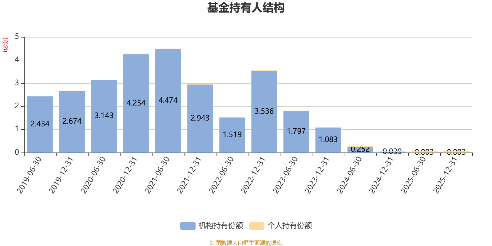 截至2025年12月31日,基金持有人共计283户,合计持有700.04万份。其中管理人员工持有217.29万份,占比31.04%,机构持有份额占比3.96%,个人投资者占比96.04%。