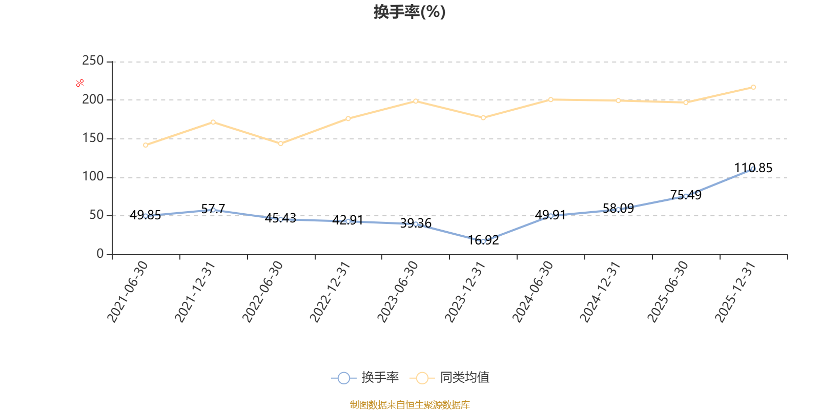 截至2025年12月31日,基金最近一年换手率约189.3%,持续低于同类均值。