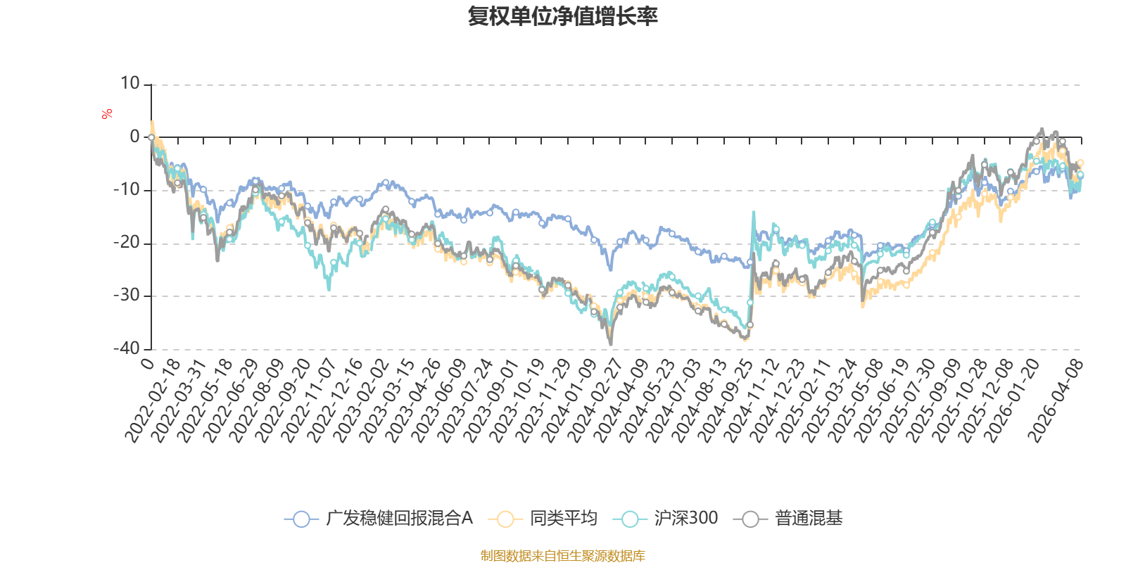 截至4月8日,广发稳健回报混合A近三个月复权单位净值增长率为0.26%,位于同类可比基金62/134;近半年复权单位净值增长率为-0.55%,位于同类可比基金90/134;近一年复权单位净值增长率为20.89%,位于同类可比基金86/134;近三年复权单位净值增长率为3.80%,位于同类可比基金93/126。
