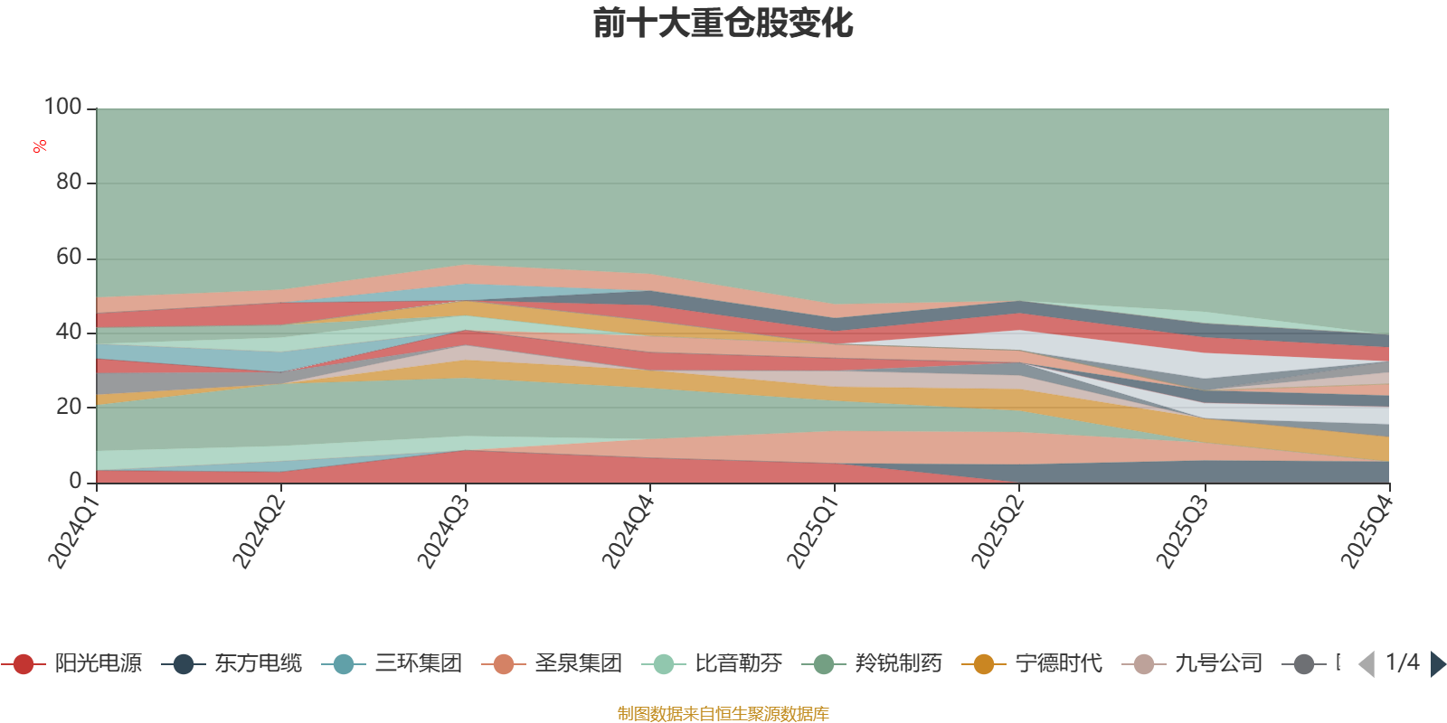 截至2025年末,基金十大重仓股分别是宁德时代、东方电缆、百普赛斯、立讯精密、中天科技、中国人保、美的集团、亨通光电、康龙化成、云天化。