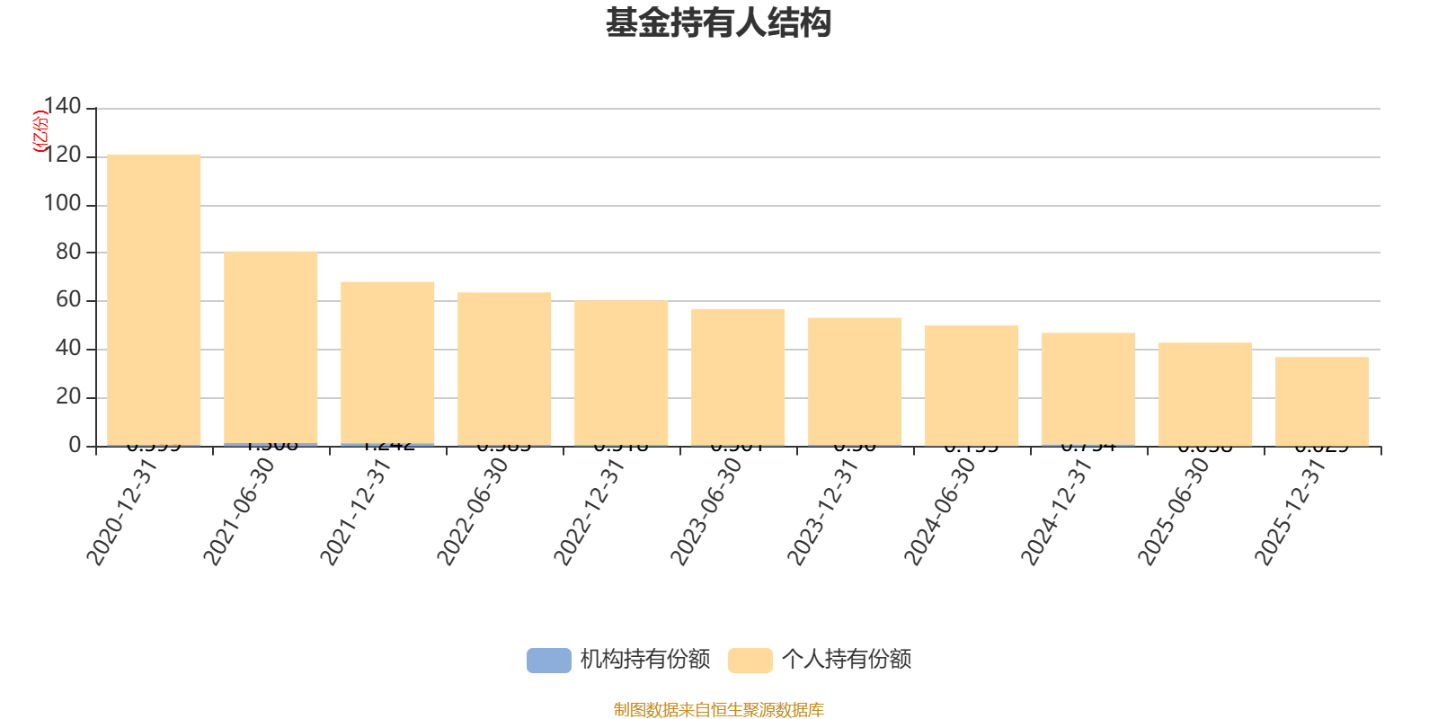 截至2025年12月31日,基金持有人共计9.77万户,合计持有36.89亿份。其中管理人员工持有110.37万份,占比0.03%,机构持有份额占比0.08%,个人投资者占比99.92%。