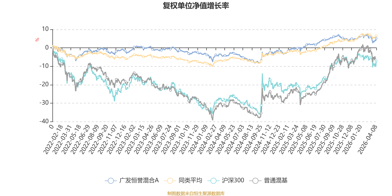 截至4月8日,广发恒誉混合A近三个月复权单位净值增长率为-0.33%,位于同类可比基金460/629;近半年复权单位净值增长率为-1.82%,位于同类可比基金590/629;近一年复权单位净值增长率为6.91%,位于同类可比基金352/629;近三年复权单位净值增长率为5.06%,位于同类可比基金470/581。