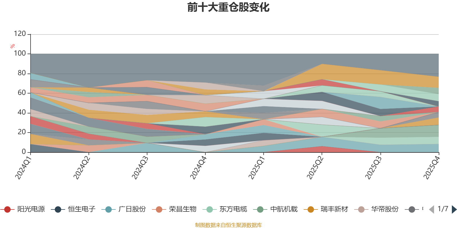 该基金持股集中度较高,近2年前十大重仓股集中度长期超过60%。截至2025年末,基金十大重仓股分别是中航机载、TCL电子、广日股份、三一重工、东方电缆、紫光国微、思摩尔国际、纽威数控、金山办公、上海家化。