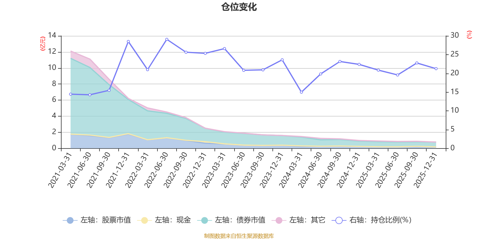 基金管理人在年报中表示,我们认为权益市场在2026年仍可以取得不错的收益,可以维持不低于中性仓位的配置力度,但由于大部分板块和指数的估值历史分位数已经不低,也需要防范波动加大带来的回撤风险。我们将继续坚守低估值的资产配置风格,积极拓展科技领域的新方向,在控制组合合理回撤的条件下,为持有人争取更为理想的回报。债券资产方面,纯债收益率经过将近一年的盘整,收益率已经达到部分配置机构的负债成本,收益率上行的趋势有望得到缓解,进入震荡区间;可转债估值不便宜,跟纯债一样都缺乏趋势性机会,我们将通过中长期利率债以及可转债的精细化操作增厚组合收益。