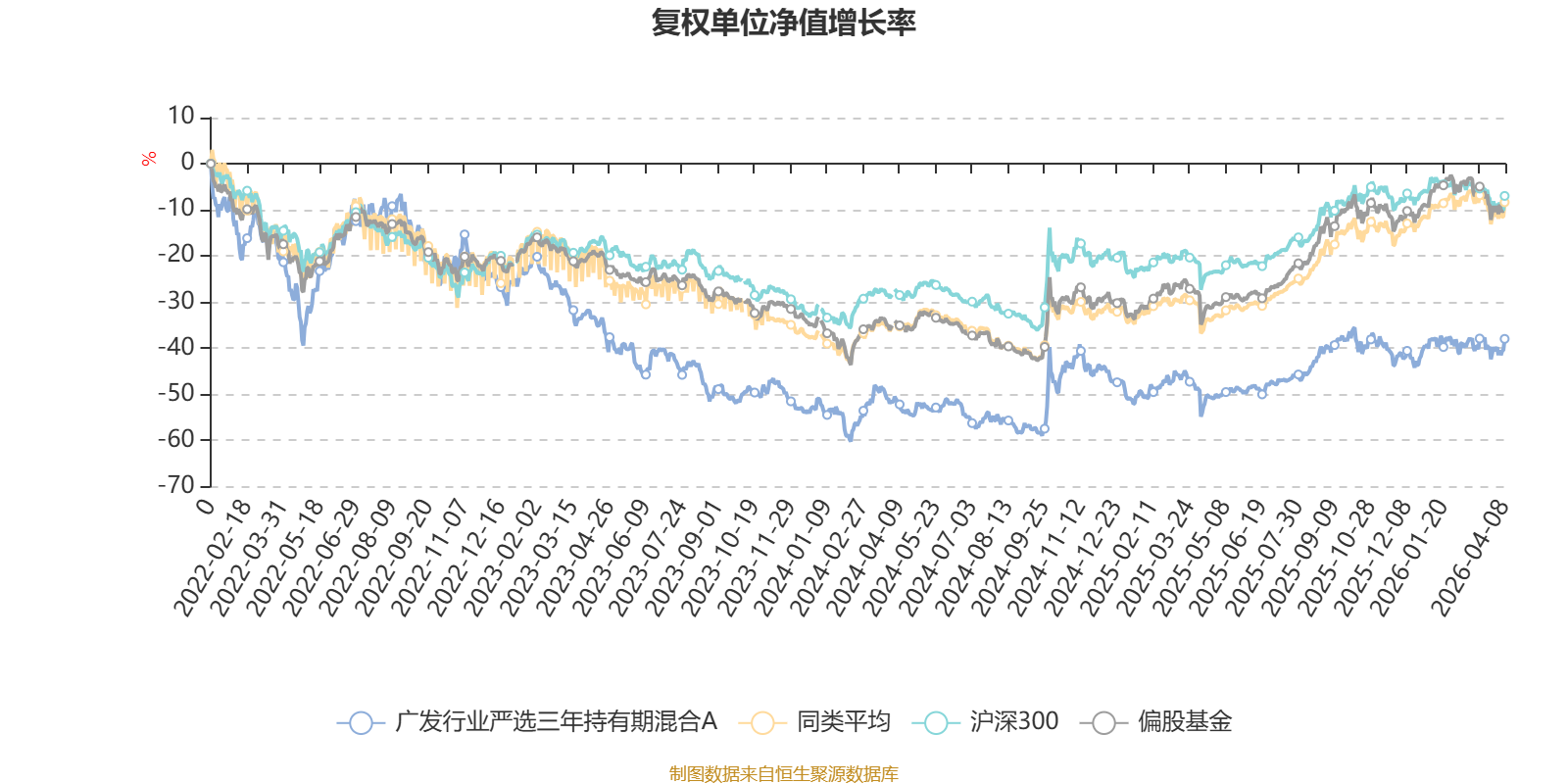 截至4月8日,广发行业严选三年持有期混合A近三个月复权单位净值增长率为0.28%,位于同类可比基金12/20;近半年复权单位净值增长率为-3.38%,位于同类可比基金18/20;近一年复权单位净值增长率为34.99%,位于同类可比基金11/20;近三年复权单位净值增长率为-7.06%,位于同类可比基金14/19。