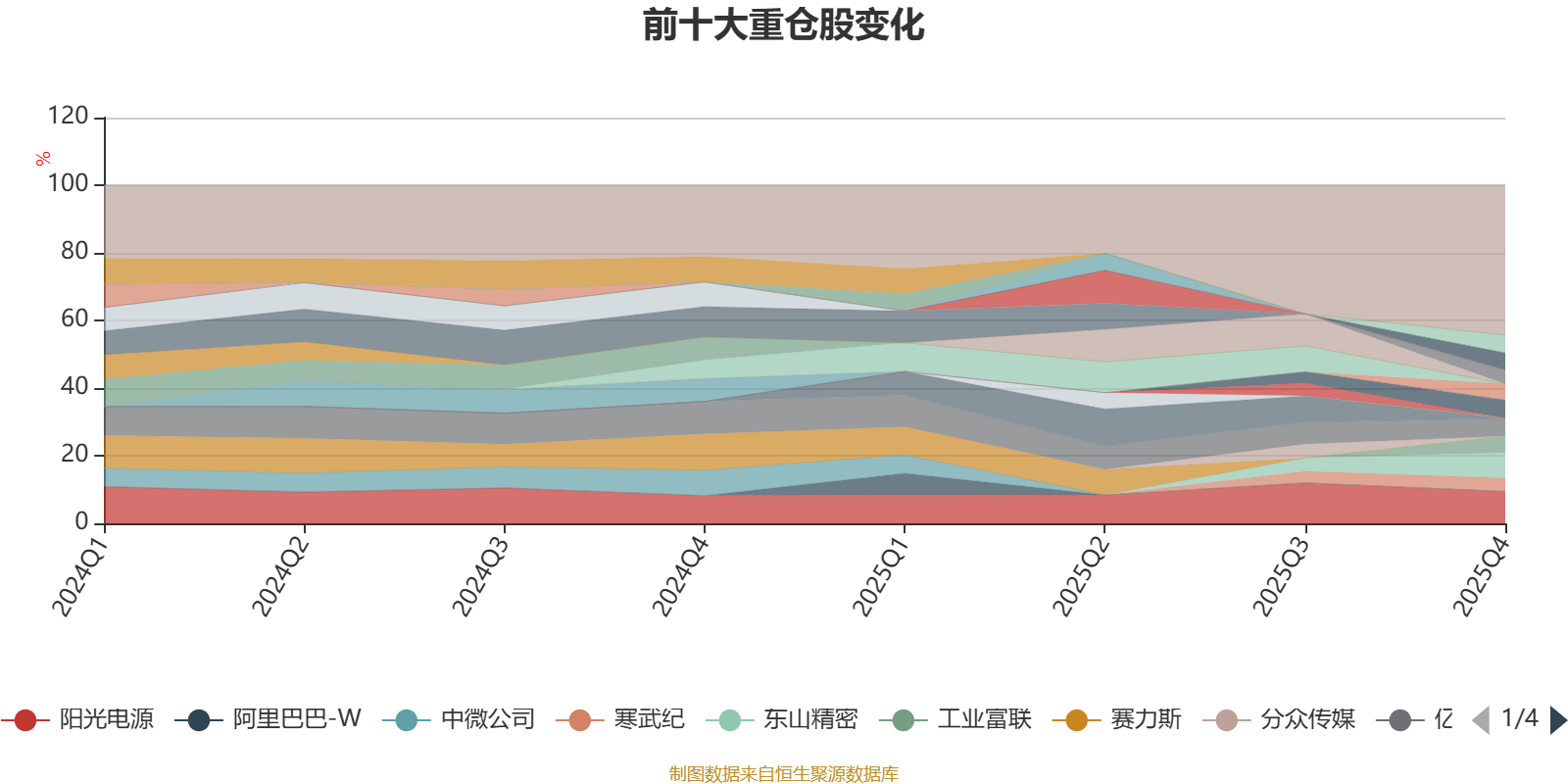 该基金持股集中度较高。截至2025年末,基金十大重仓股分别是阳光电源、东山精密、华虹半导体、亿纬锂能、中芯国际、中际旭创、工业富联、新易盛、长盈精密、寒武纪。