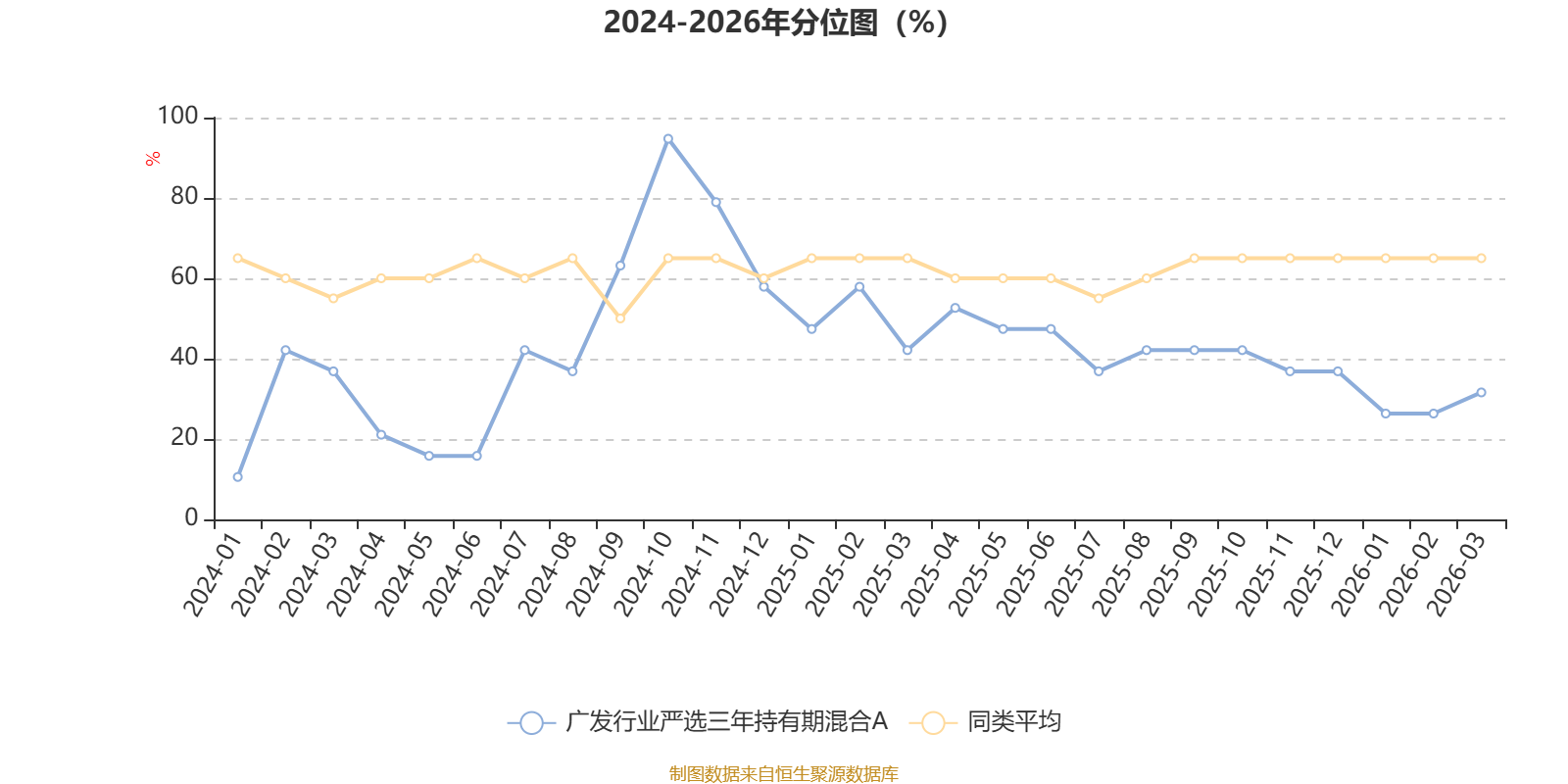 通过所选区间该基金净值增长率分位图,可以观察该基金与同类基金业绩比较情况。图为坐标原点到区间内某时点的净值增长率在同类基金中的分位数。
