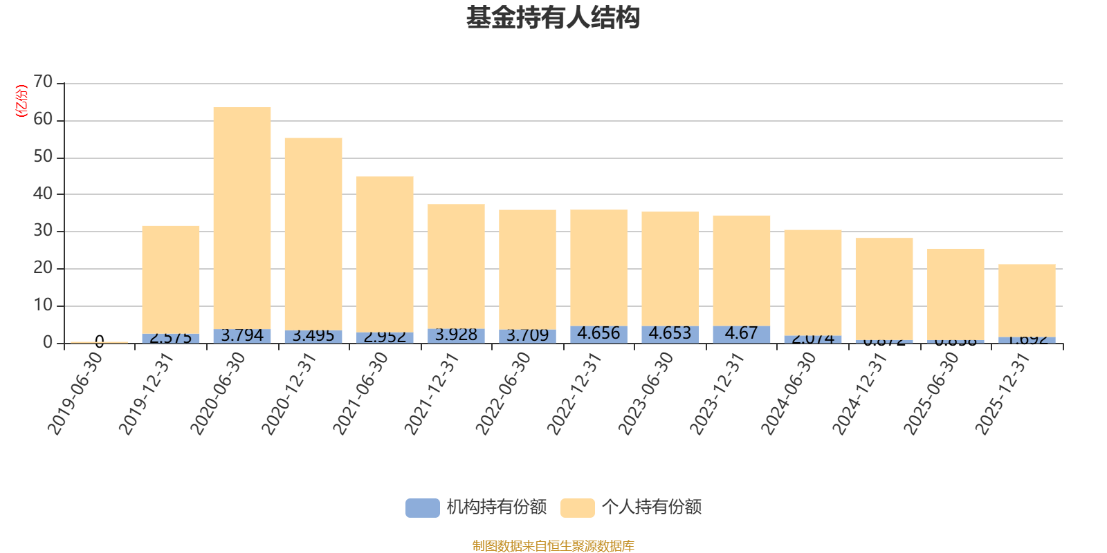 截至2025年12月31日,基金持有人共计25.67万户,合计持有21.23亿份。其中管理人员工持有186.64万份,占比0.09%,机构持有份额占比7.97%,个人投资者占比92.03%。