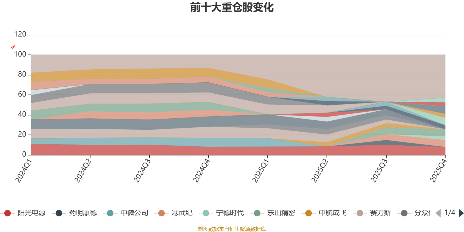 该基金持股集中度较高。截至2025年末,基金十大重仓股分别是阳光电源、中际旭创、新易盛、东山精密、寒武纪、中芯国际、复旦微电、长盈精密、胜宏科技、宁德时代。