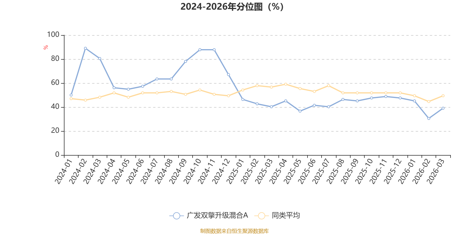 通过所选区间该基金净值增长率分位图,可以观察该基金与同类基金业绩比较情况。图为坐标原点到区间内某时点的净值增长率在同类基金中的分位数。