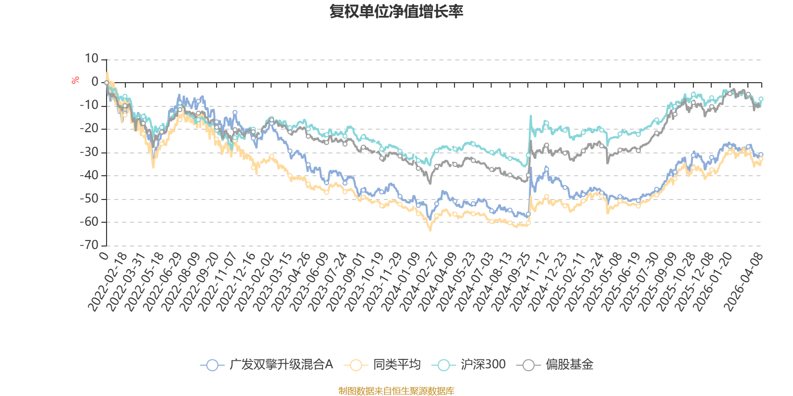 截至4月8日,广发双擎升级混合A近三个月复权单位净值增长率为-5.32%,位于同类可比基金70/100;近半年复权单位净值增长率为1.62%,位于同类可比基金42/100;近一年复权单位净值增长率为44.27%,位于同类可比基金58/99;近三年复权单位净值增长率为-0.58%,位于同类可比基金58/76。