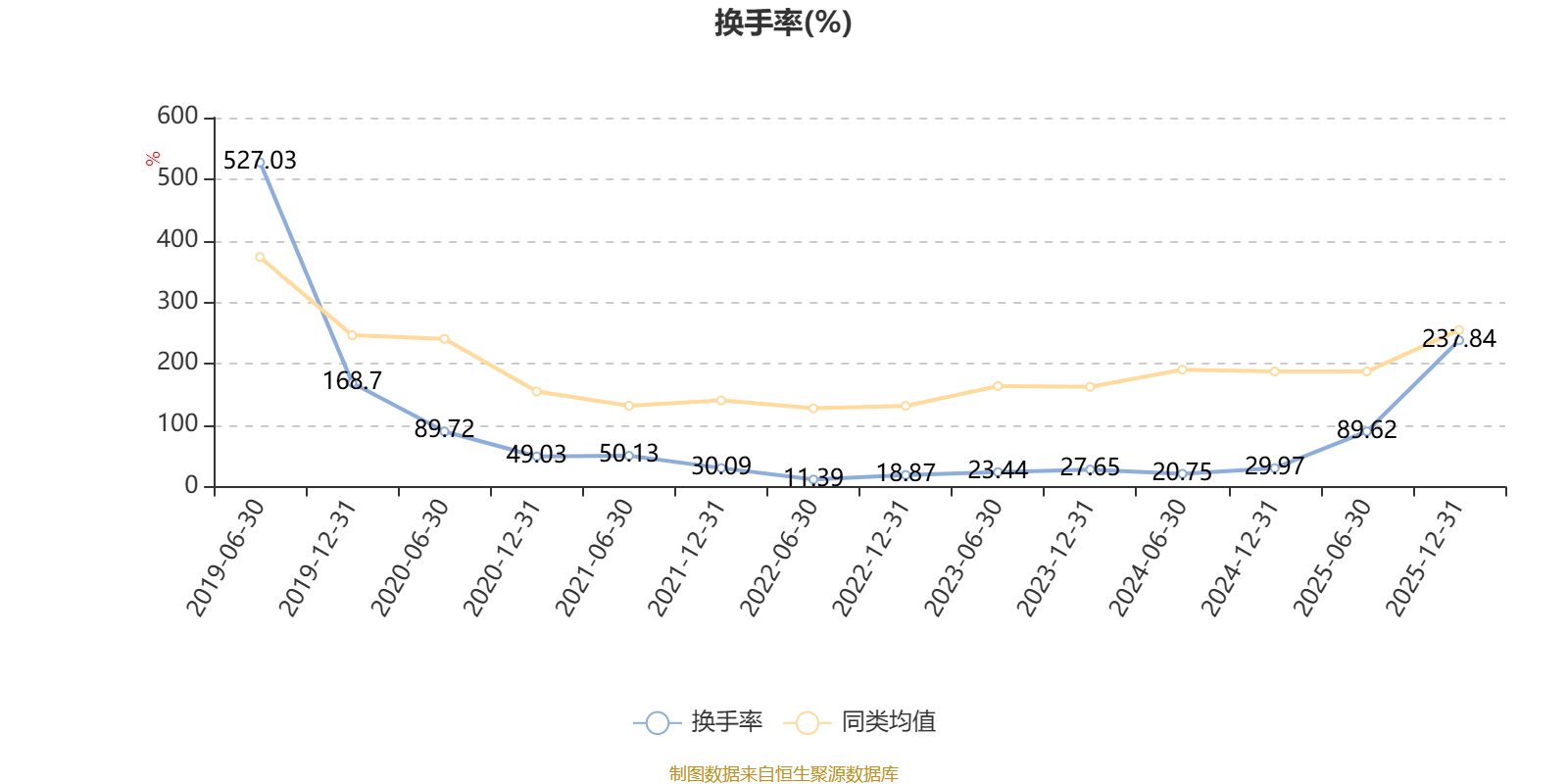 截至2025年12月31日,基金最近一年换手率约324.97%,持续6年低于同类均值。