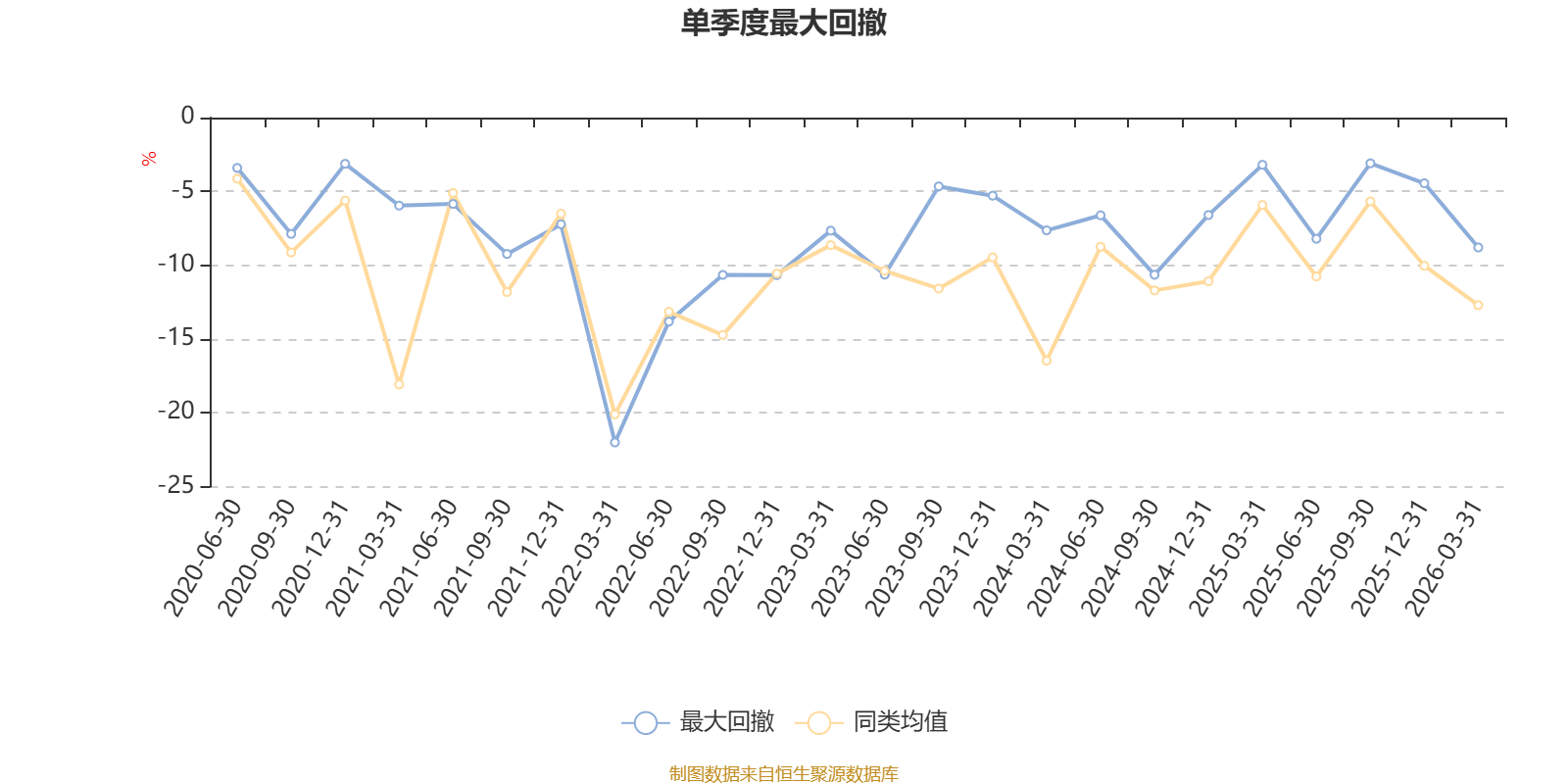截至4月8日,基金近三年最大回撤为14.74%,同类可比基金排名5/550。单季度最大回撤出现在2022年一季度,为22.01%。