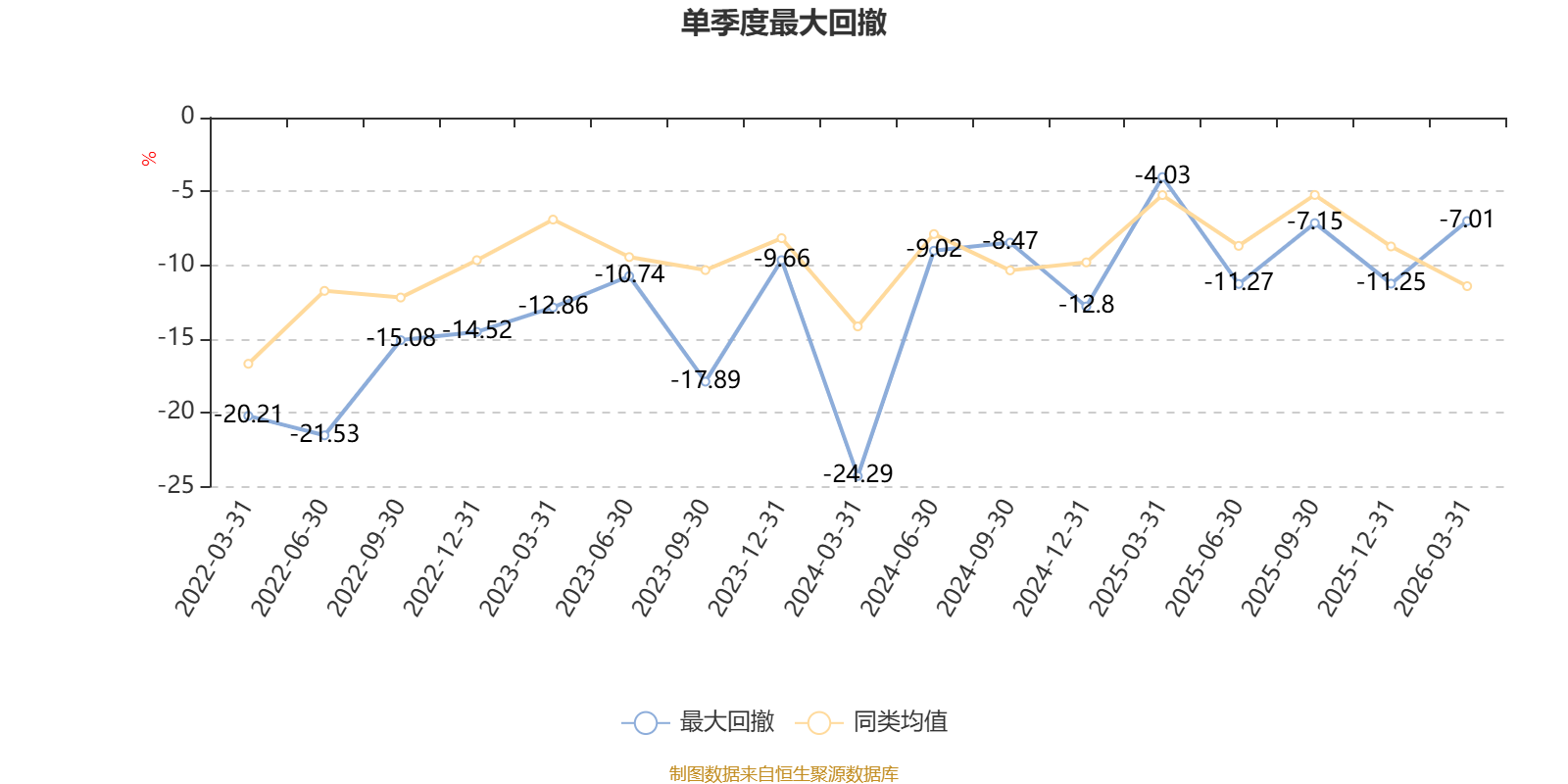 截至4月8日,基金近三年最大回撤为41.43%,同类可比基金排名1053/1264。单季度最大回撤出现在2024年一季度,为24.29%。