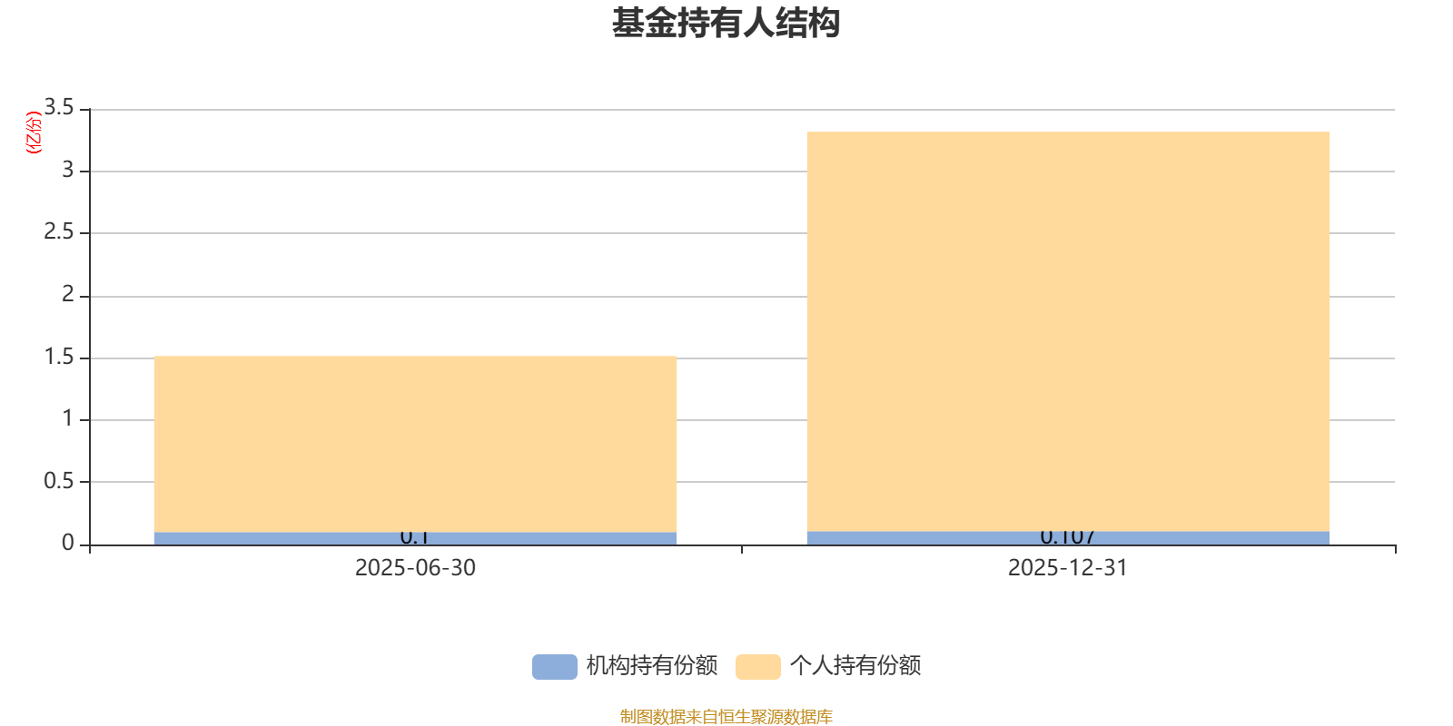 截至2025年12月31日,基金持有人共计2.64万户,合计持有3.32亿份。其中管理人员工持有224.42万份,占比0.68%,机构持有份额占比3.22%,个人投资者占比96.78%。