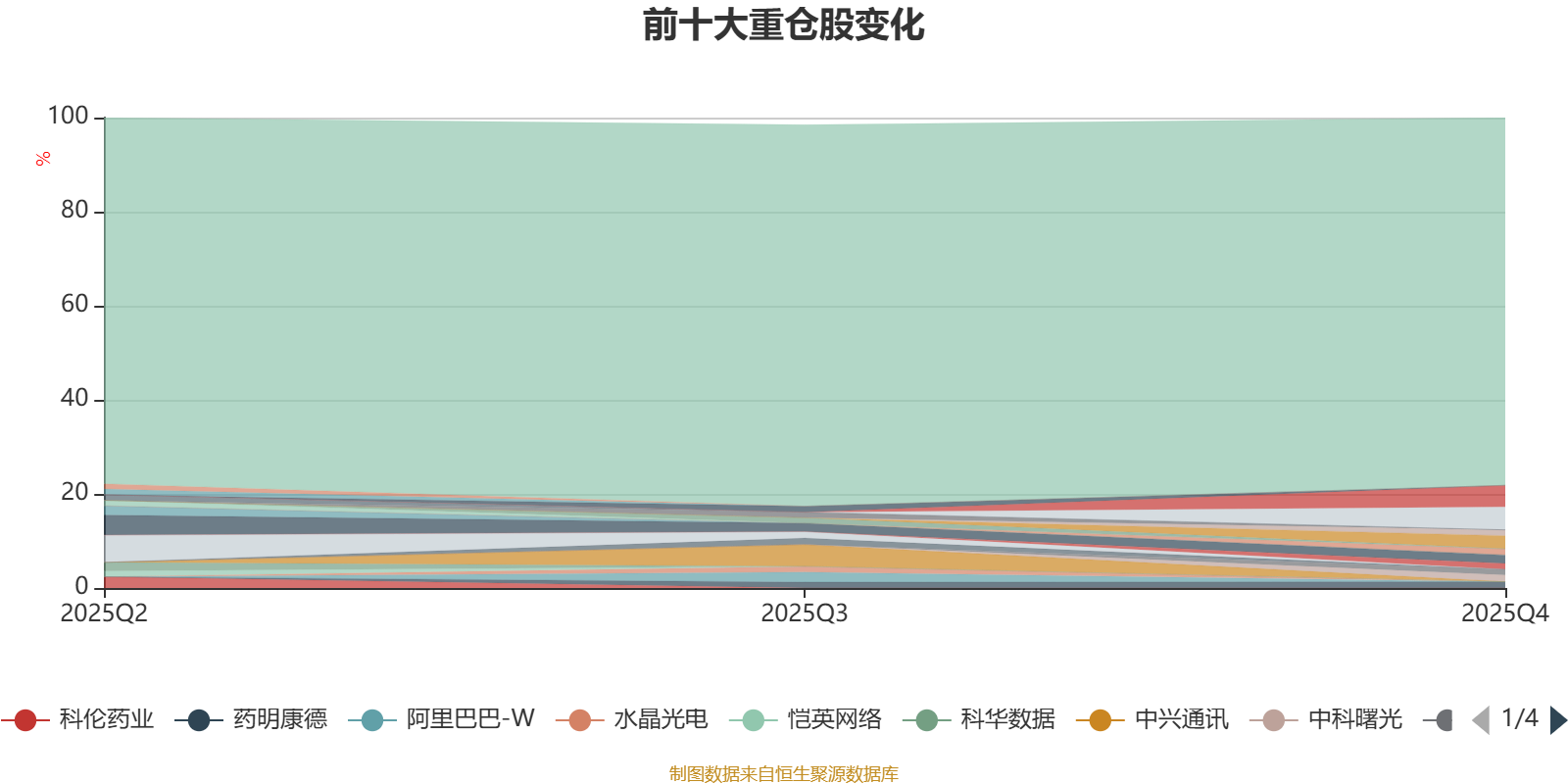截至2025年末,基金十大重仓股分别是中际旭创、立讯精密、新易盛、宁德时代、中科曙光、药明康德、歌尔股份、华友钴业、京东方A、万华化学。