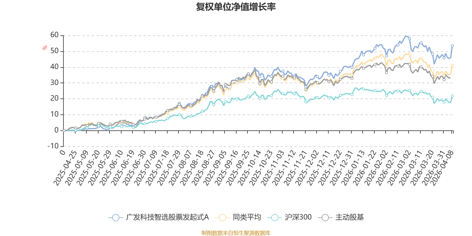 截至4月8日,广发科技智选股票发起式A近三个月复权单位净值增长率为5.51%,位于同类可比基金18/167;近半年复权单位净值增长率为12.30%,位于同类可比基金23/167。