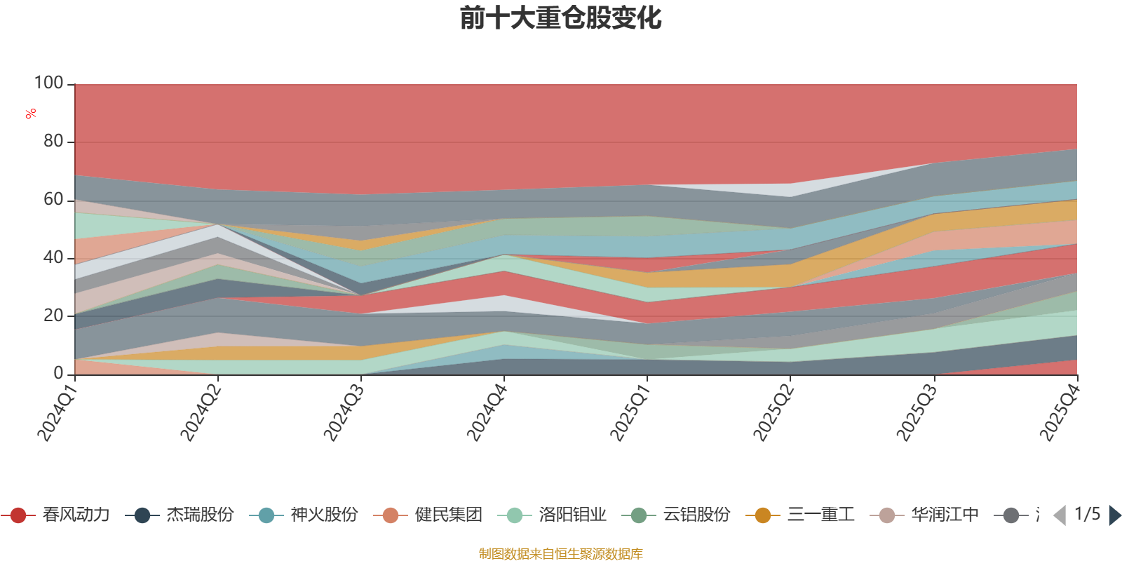 该基金持股集中度较高,近2年前十大重仓股集中度长期超过60%。截至2025年末,基金十大重仓股分别是紫金矿业、宁德时代、洛阳钼业、杰瑞股份、宇通客车、中孚实业、云铝股份、美的集团、海信视像、春风动力。