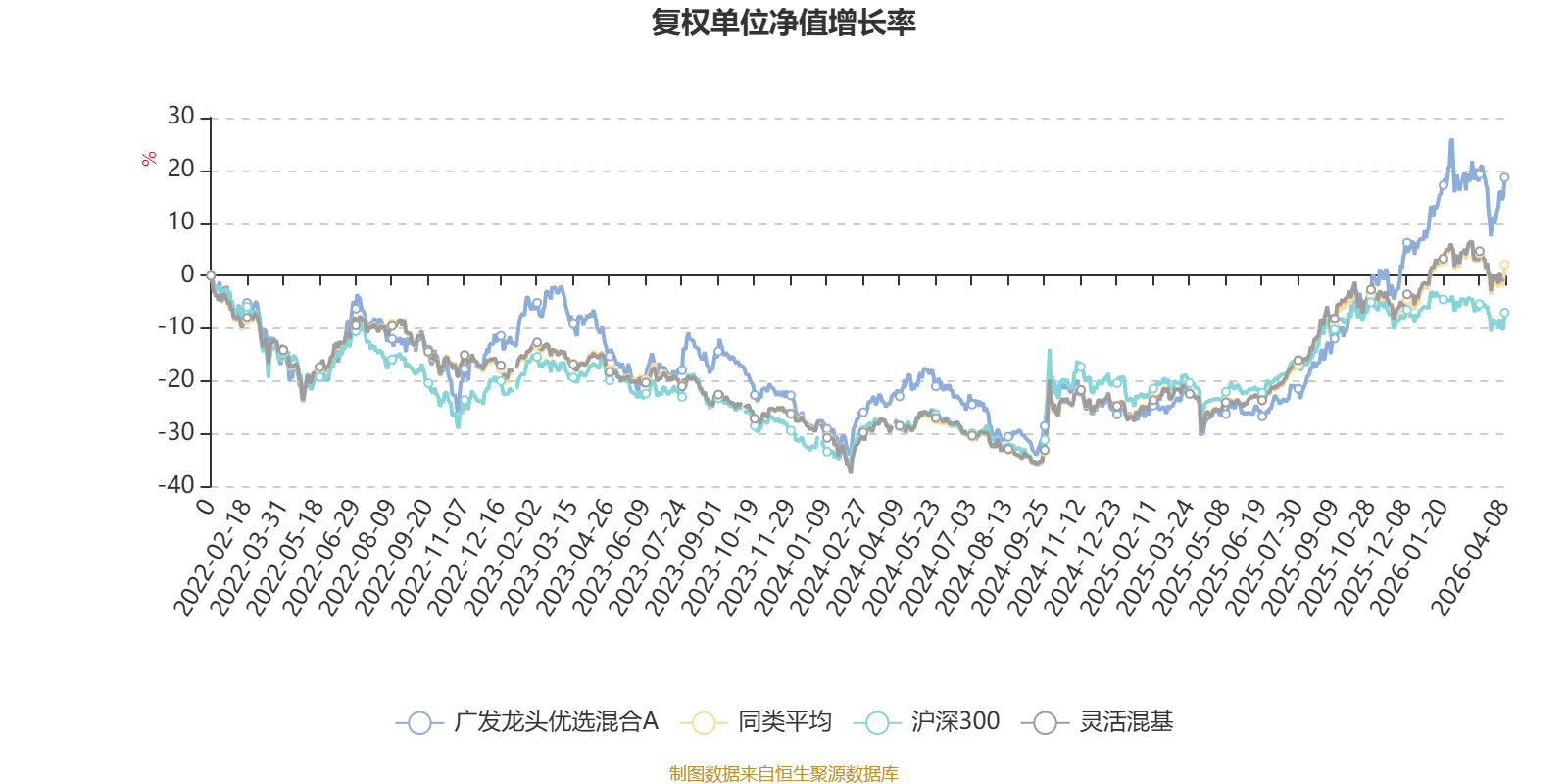 截至4月8日,广发龙头优选混合A近三个月复权单位净值增长率为6.59%,位于同类可比基金173/1287;近半年复权单位净值增长率为24.08%,位于同类可比基金64/1286;近一年复权单位净值增长率为68.48%,位于同类可比基金214/1286;近三年复权单位净值增长率为26.78%,位于同类可比基金382/1286。