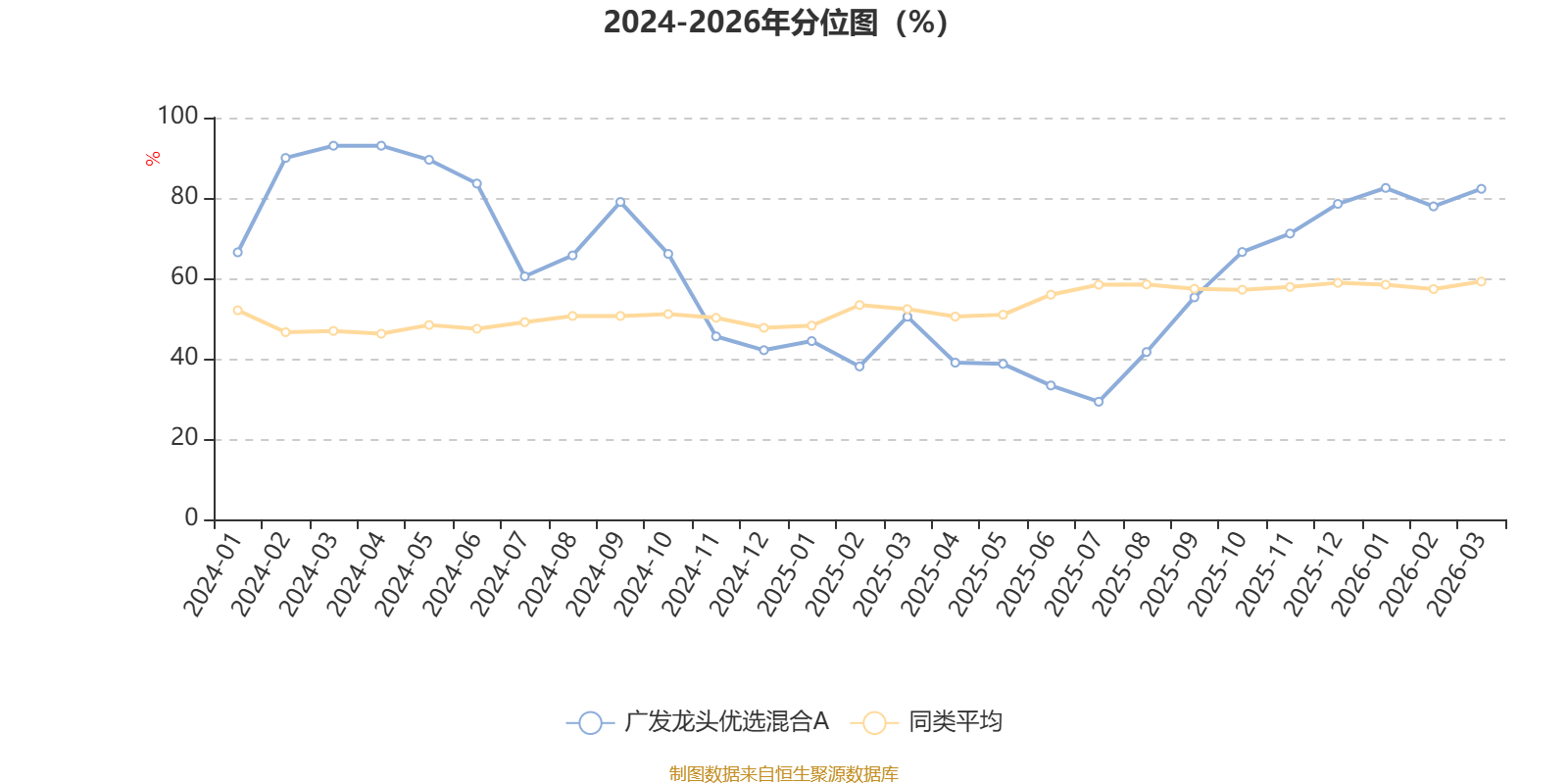 通过所选区间该基金净值增长率分位图,可以观察该基金与同类基金业绩比较情况。图为坐标原点到区间内某时点的净值增长率在同类基金中的分位数。