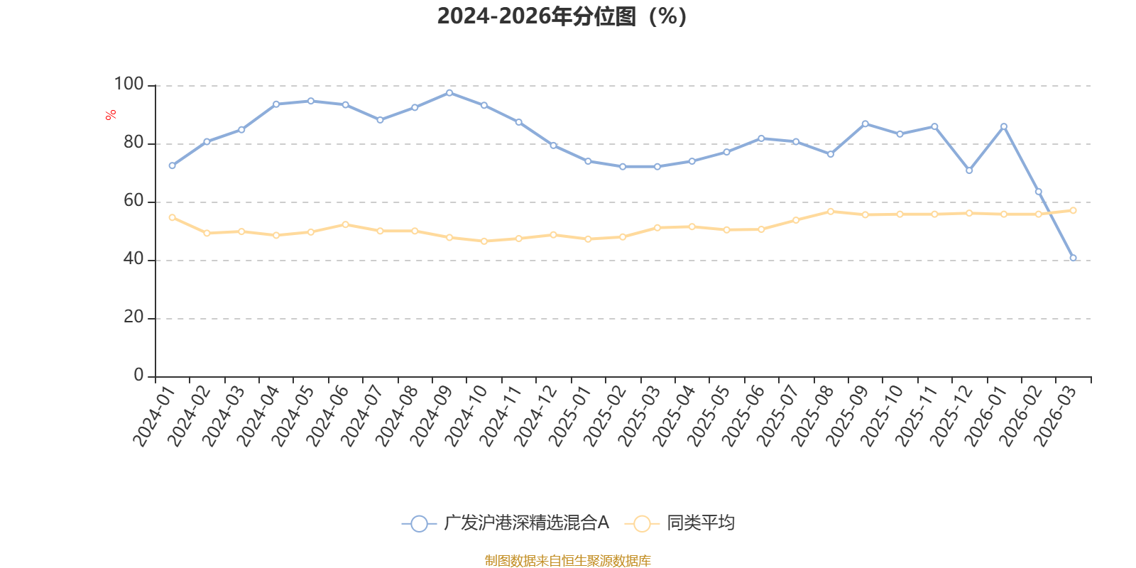 通过所选区间该基金净值增长率分位图,可以观察该基金与同类基金业绩比较情况。图为坐标原点到区间内某时点的净值增长率在同类基金中的分位数。