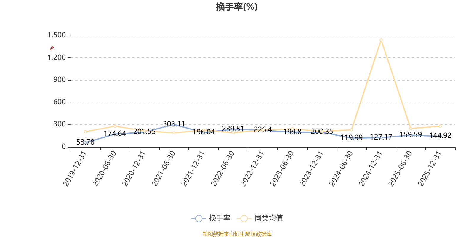 截至2025年12月31日,基金最近一年换手率约304.67%,持续3年低于同类均值。
