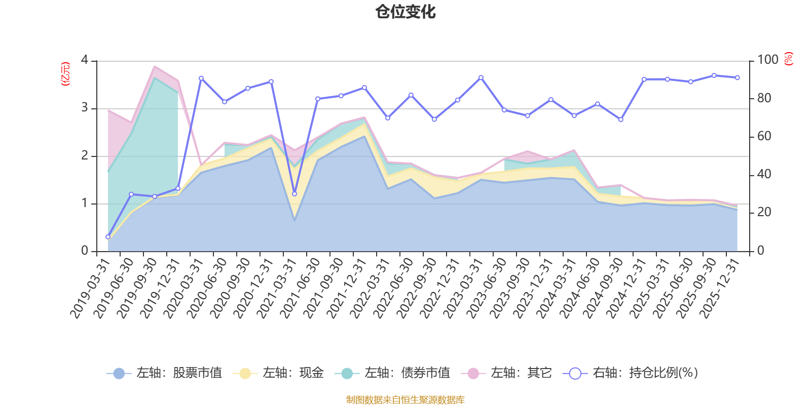 据定期报告数据统计,近三年平均股票仓位为82.24%,同类平均为72.57%。2025年三季度末基金达到92.28%的最高仓位,2019年一季度末最低,为7.62%。