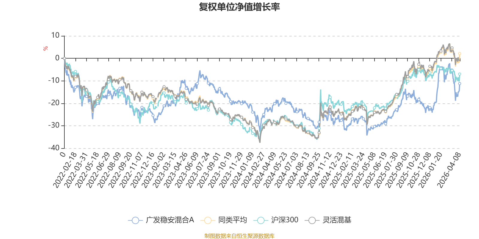 截至4月8日,广发稳安混合A近三个月复权单位净值增长率为1.86%,位于同类可比基金422/1287;近半年复权单位净值增长率为4.71%,位于同类可比基金512/1286;近一年复权单位净值增长率为33.75%,位于同类可比基金630/1286;近三年复权单位净值增长率为-1.48%,位于同类可比基金988/1286。